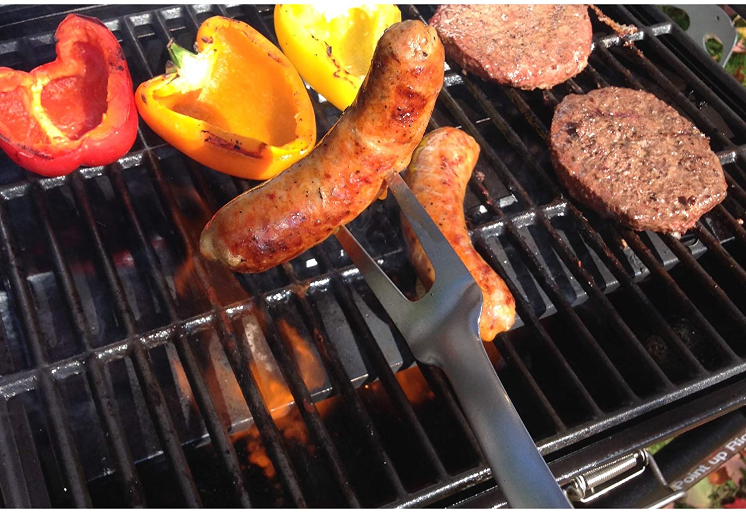 - Optimal grilling length Features: Set includes Spatula Tongs and Fork|Stainless construction|Rubber grips