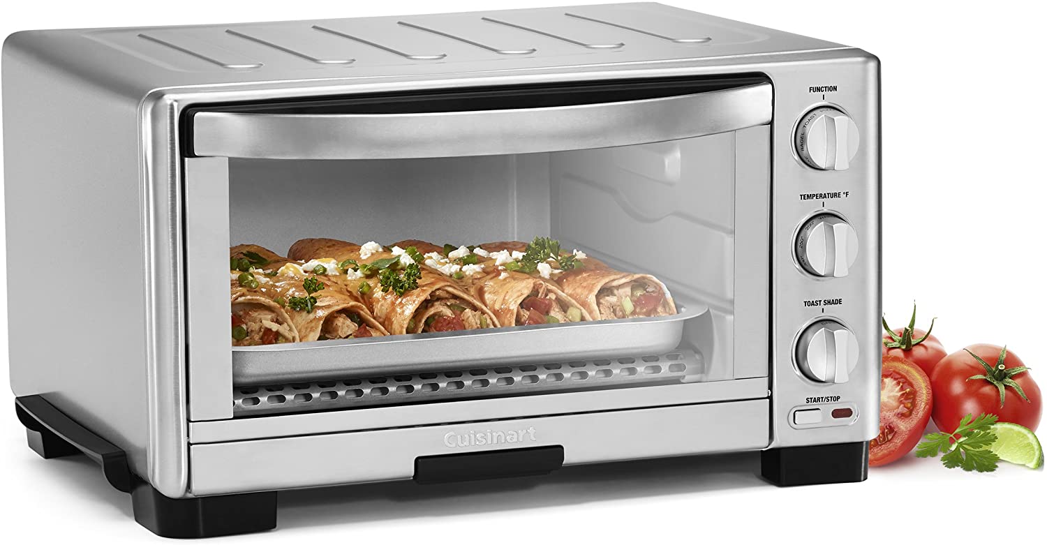 From evenly toasting bread to cooking a roast with mouthwatering results, Cuisinart's new toaster oven offers today's home cooks superior performance and versatility. Equipped with 1800 watts of power, this kitchen essential is large enough to accommodate 6 slices of toast, and always even technology ensures consistent results every time! a dedicated pizza function bakes an 11" pizza to perfection in minutes. The cool-touch handle, slide-out rack, and easy-clean nonstick interior add exceptional convenience. With its elegant stainless steel front, this toaster oven is trademark Cuisinart. Features: 1800 watts of high-performance power|Functions include Toast Bagel Bake Broil Pizza and Keep Warm|0.5 cubic foot capacity – fits an 11" pizza or 6 slices of toast|Stainless steel front with cool-touch handle|Always Even™ technology for consistently even toasting|Auto slide-out rack to easily remove cooked food|Easy-clean nonstick interior|Front removable crumb tray with cool-touch grip for easy clean up
