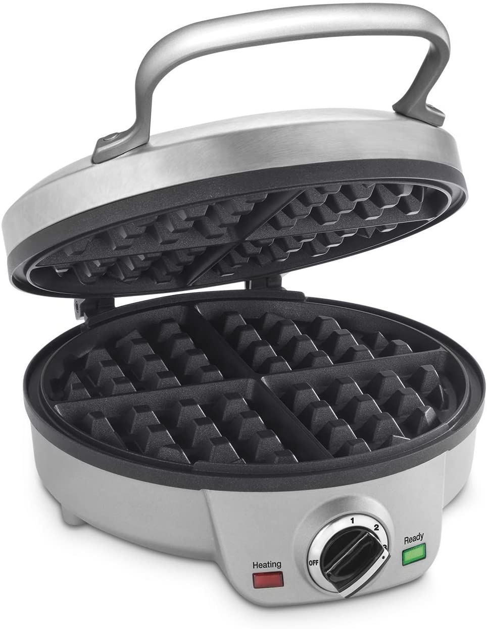 The Cuisinart 4-Slice Belgian Waffle Maker always cooks golden waffles that are crispy on the outside and mouthwateringly tender on the inside. With a stylish brushed stainless steel cover, the waffle iron offers an adjustable temperature control with six browning settings for ultimate control. The result. Precise perfection.