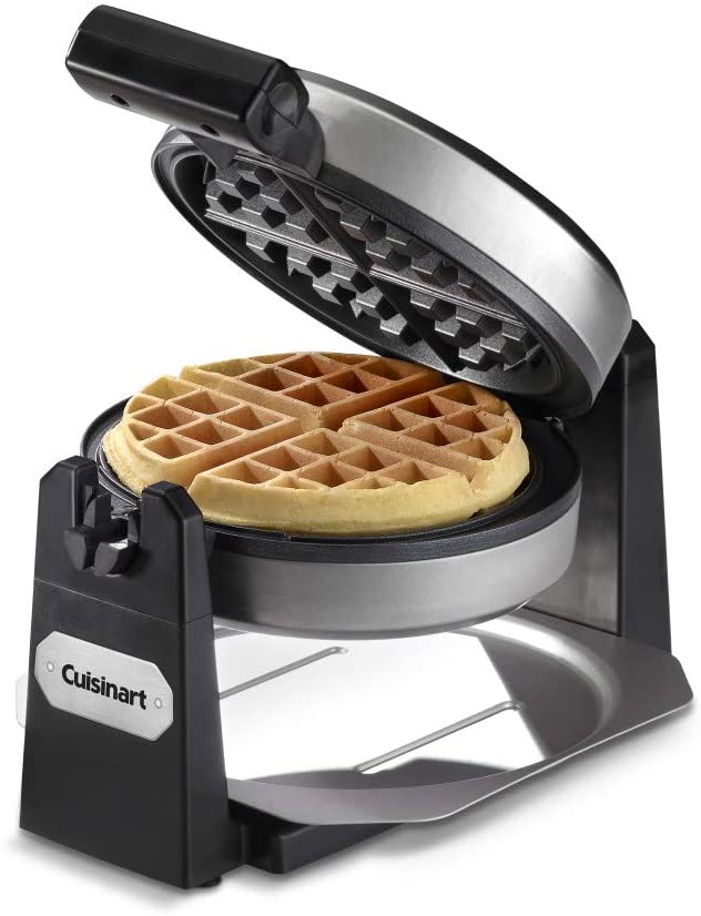 The Cuisinart Belgian Waffle Maker expertly bakes golden, delicious, deep-pocketed waffles in minutes. Just add syrup or fruit and enjoy a luxurious breakfast or special dessert right at home! The easy-to-handle rotary feature flips waffles 180 degrees to ensure even cooking on top and bottom. A 6-setting browning control knob ensures waffles are cooked perfectly, from light and fluffy to crisp and brown. LED lights and audio beep tones indicate when unit is ready to cook and when waffles are done. And the nonstick coating wipes clean for effortless food release, no mess, and easy cleanup. It's the perfect gift or perfect addition to any kitchen! Features: Extra-deep 1 inch restaurant-style waffle|Nonstick coated waffle grids easily release waffles and make cleaning effortless|Easy-to-handle rotary feature for even baking on top and bottom|1000 watts|Browning control knob for custom baking|Blue LED lights indicate when unit is ready for batter and when waffle is done|Brushed stainless steel housing with black base|Limited One Year Warranty