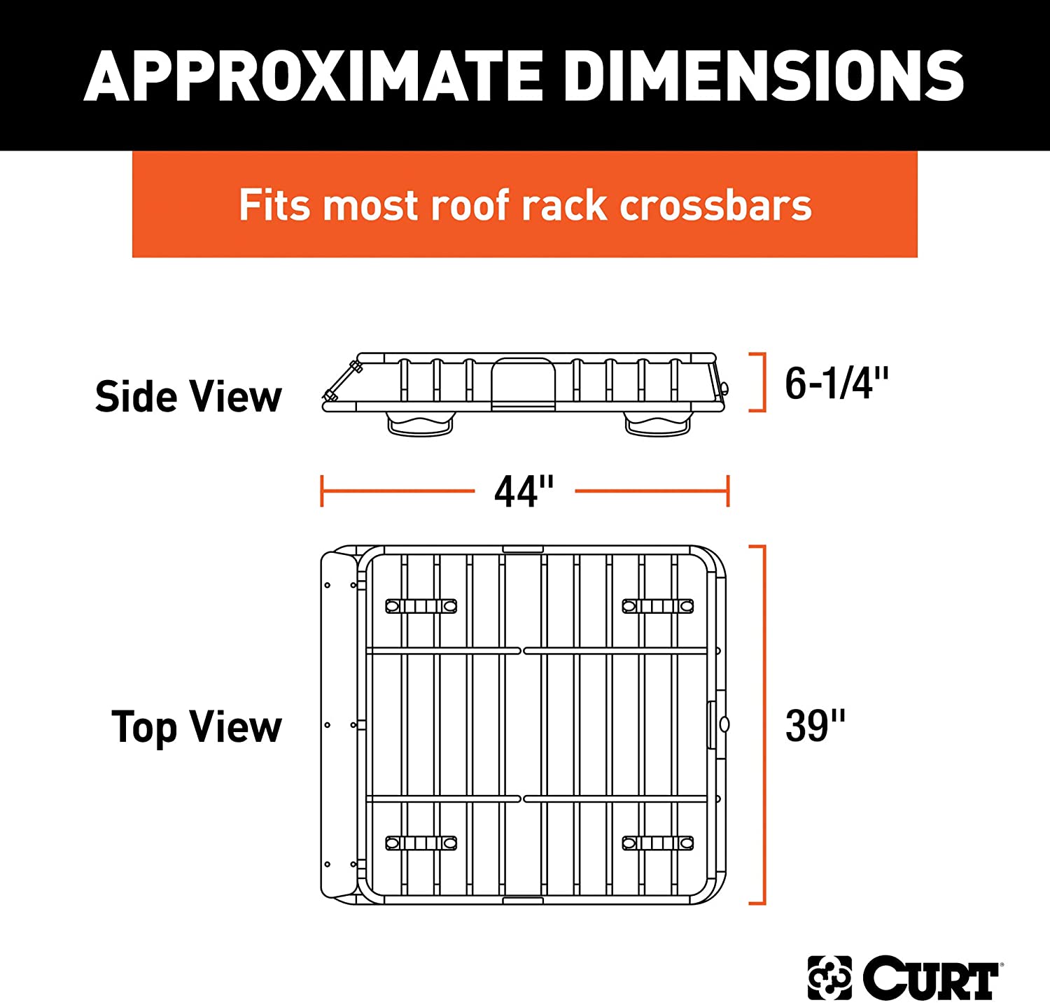 • EXPANDABLE. Great as a car roof rack, this cargo carrier is expandable. With the separate extension piece CURT #18117, the usable square footage goes from 11 sq. ft. to nearly 17 sq. ft