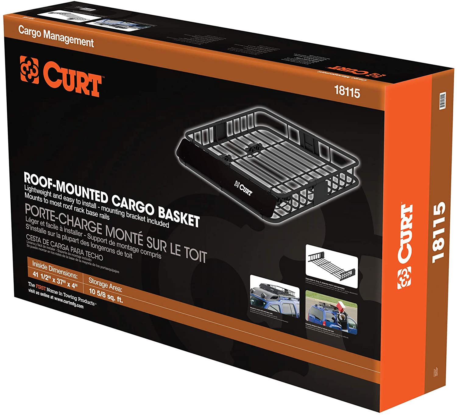 CURT 18115 Universal 42 x 37-Inch Black Steel Roof Rack Rooftop Cargo Carrier