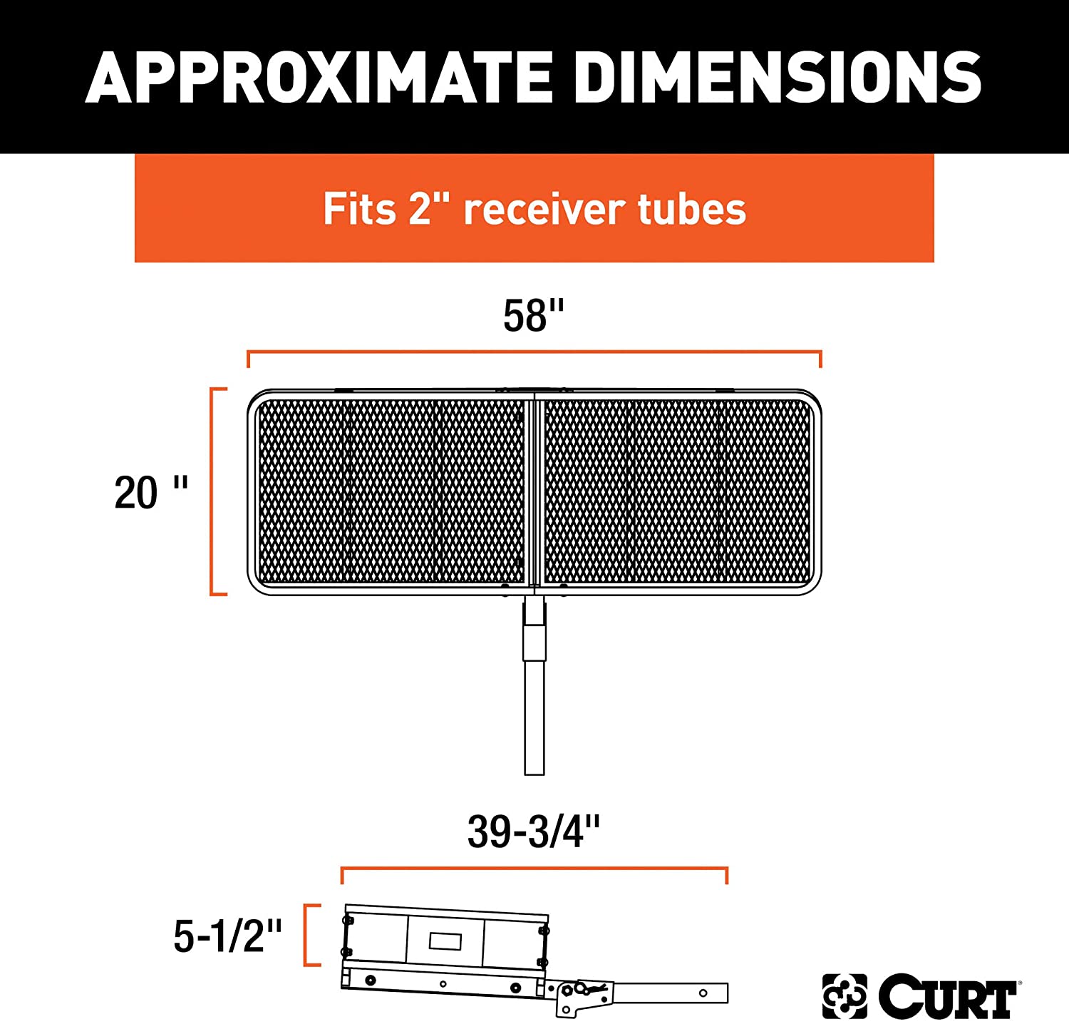 CURT 18151 60 x 20-Inch Basket Hitch Cargo Carrier, 500 lbs Capacity, Black Steel, 2-In Folding Shank