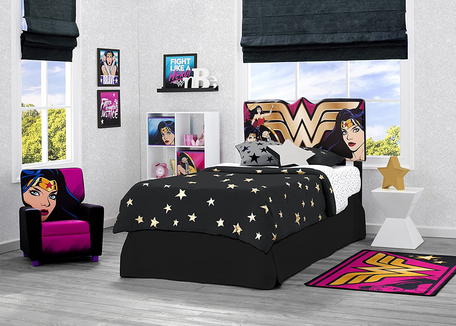 • FOR THE WONDER WOMAN FAN IN YOUR LIFE: Headboard is shaped to resemble Wonder Womans symbol and features ultra-cool graphics of the warrior princess