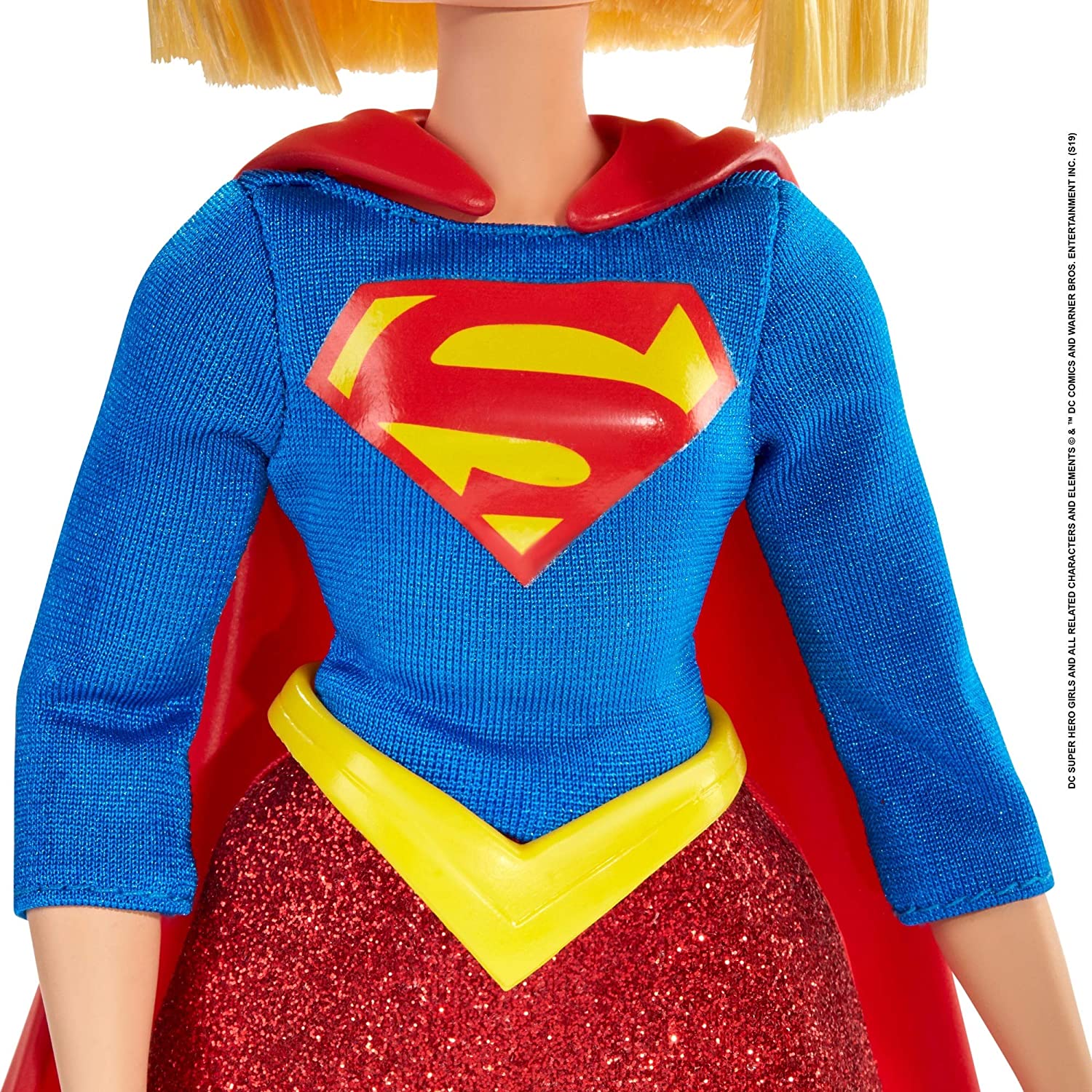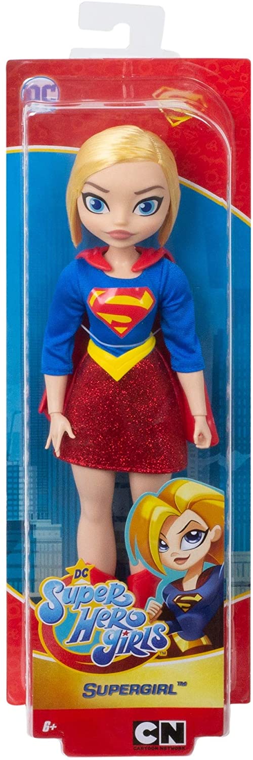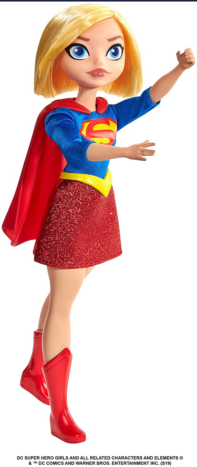 Fans of DC Super Hero Girls can discover their own inner heroes with these action dolls. Fearless, strong, and a rebel rocker -this Supergirl doll is ready to save the day in her iconic outfit designed with her signature logo and colors. She makes a powerful fashion statement with her removable shiny cape, sparkly red skirt, blue top, and boots. Fans will love her Super Hero look, with her strong build and edgy short hairdo, just like in the show. She can stand alone for powerful posing and action-Packed play. Collect all the DC Super Hero Girls characters and discover your own unique super powers! Includes action doll (approx. 10.5 in.) wearing fashions and accessories. Each sold separately, subject to availability. Colors and decorations may vary.