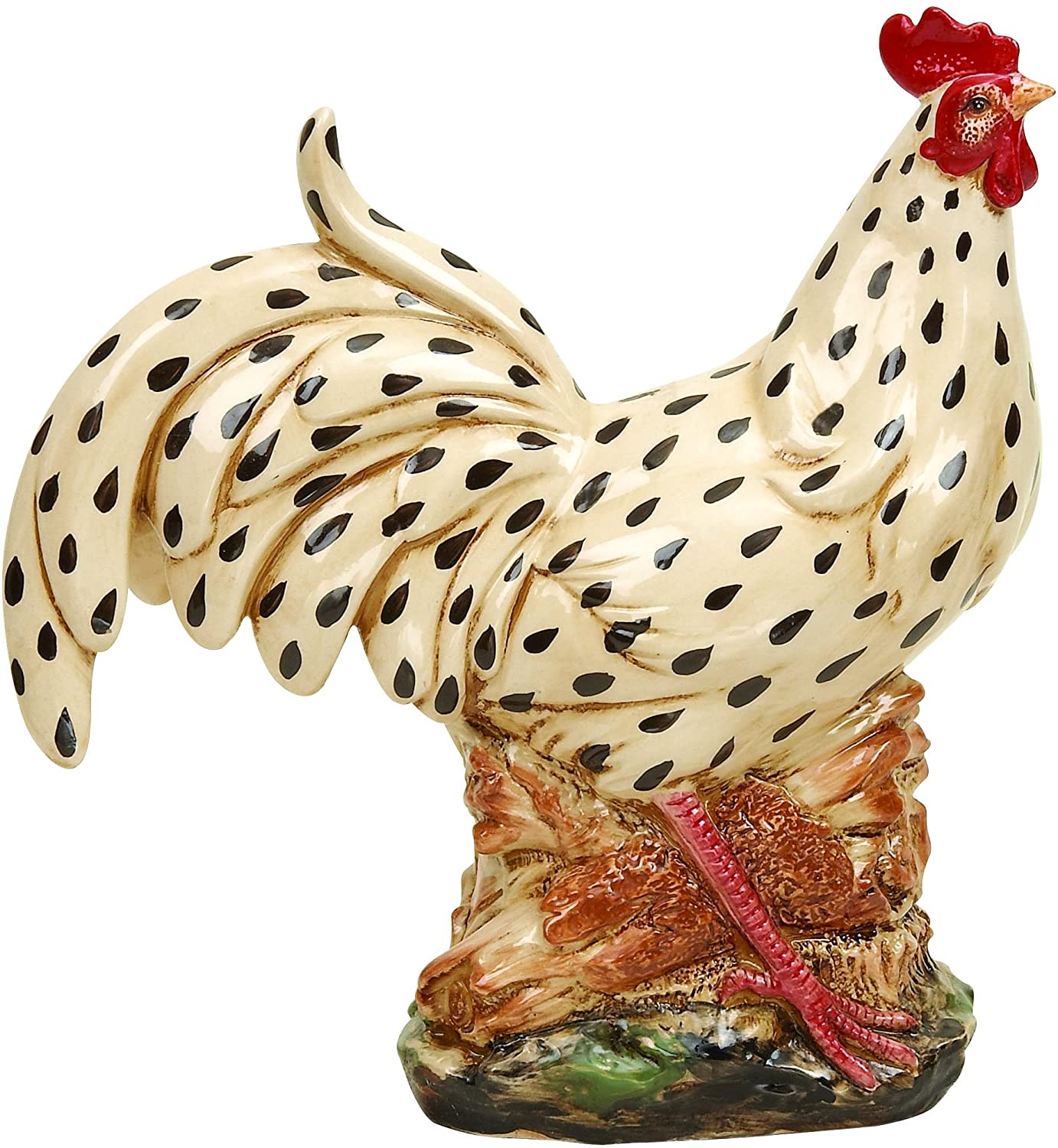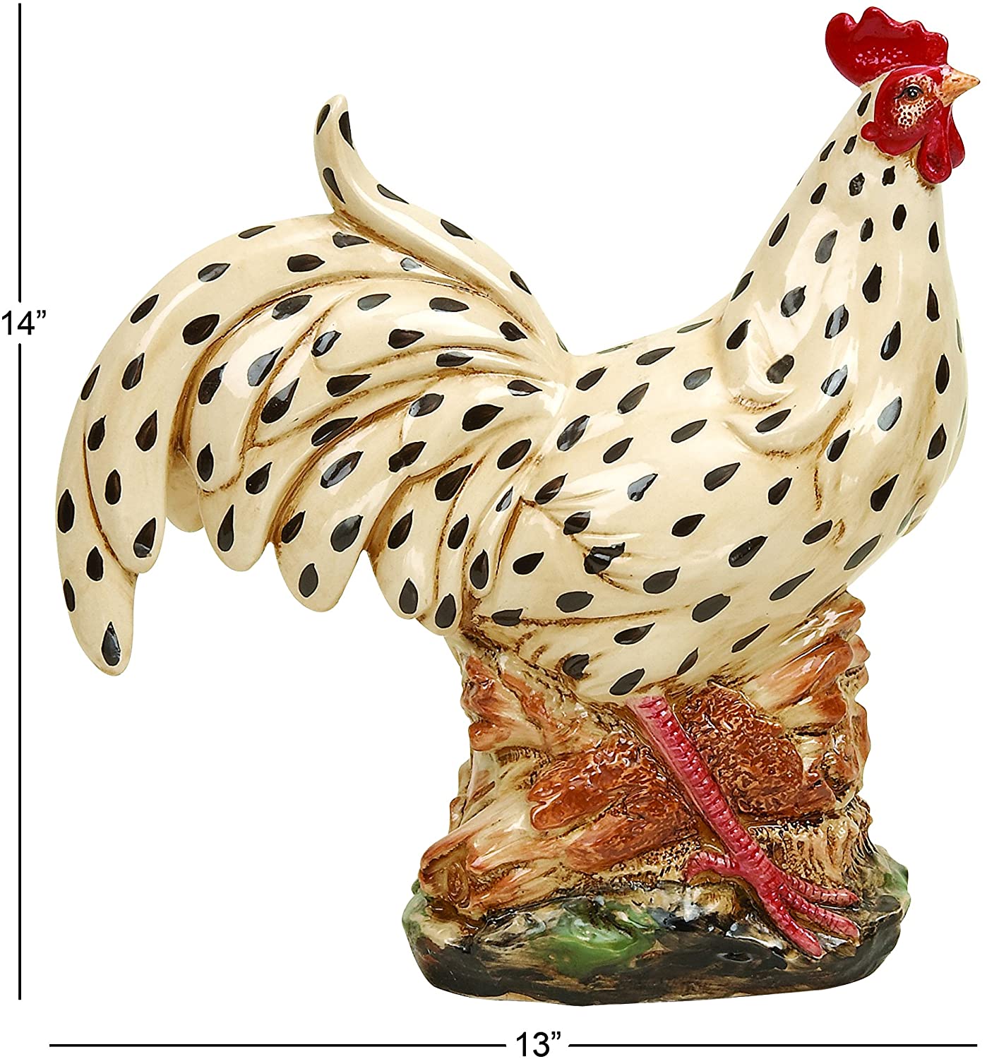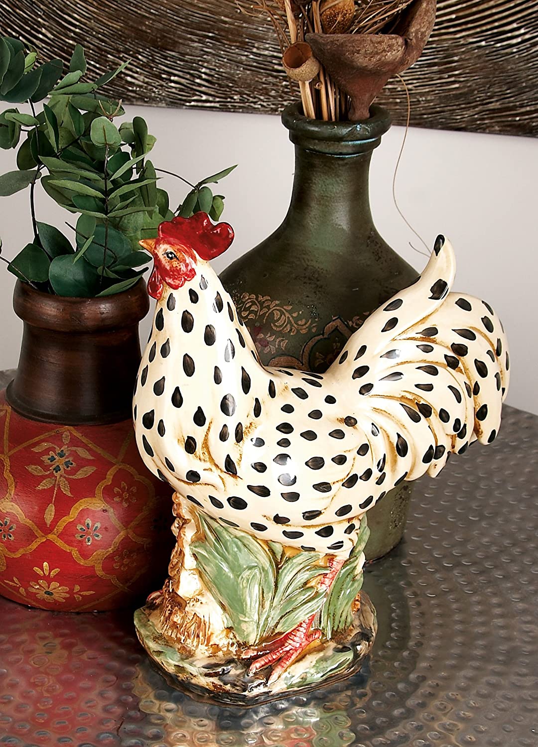 Deco 79 decorative rooster statue adds a touch of sophistication to any decor. Made of ceramic material. Features good colors, posture and form. As a fun looking sculpture this statue is perfect inside in the kitchen or dining room, or outside on the patio or garden. Includes 3 statues per pack. Measures 13-inch width by 14-inch height.