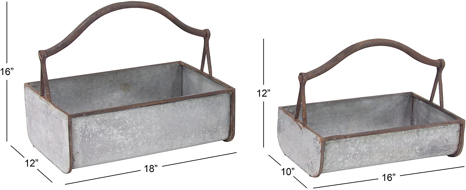 Set of two 18" and 16" Rustic Reflections, galvanized metal pot, made from 100% steel with distressed metal handle