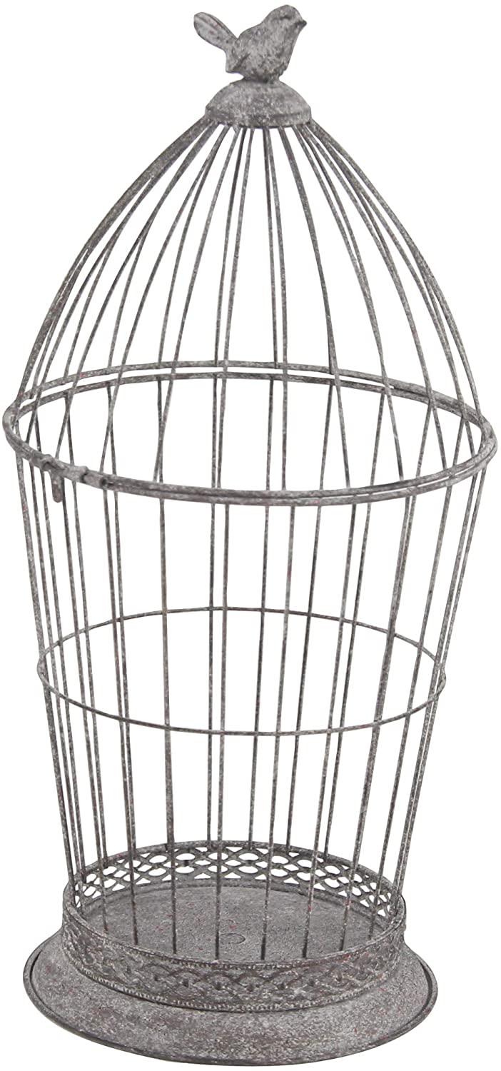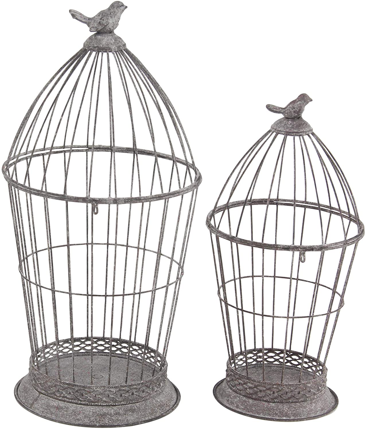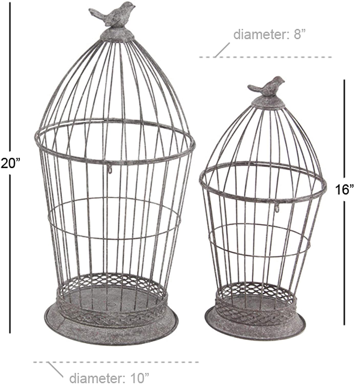 Incorporate a farmhouse-inspired theme into your interior with the Deco 79 Farmhouse Gray Metal Birdcage Candle Lanterns - Set of 2, 20 and 16-Inch. Each piece in this set highlights a tapered bird cage-inspired frame in a tarnished and distressed gray coloring for a rugged finish. A small bird figurine finial completes the look of the birdcage lanterns, bringing a touch of playful charm to rooms and spaces.