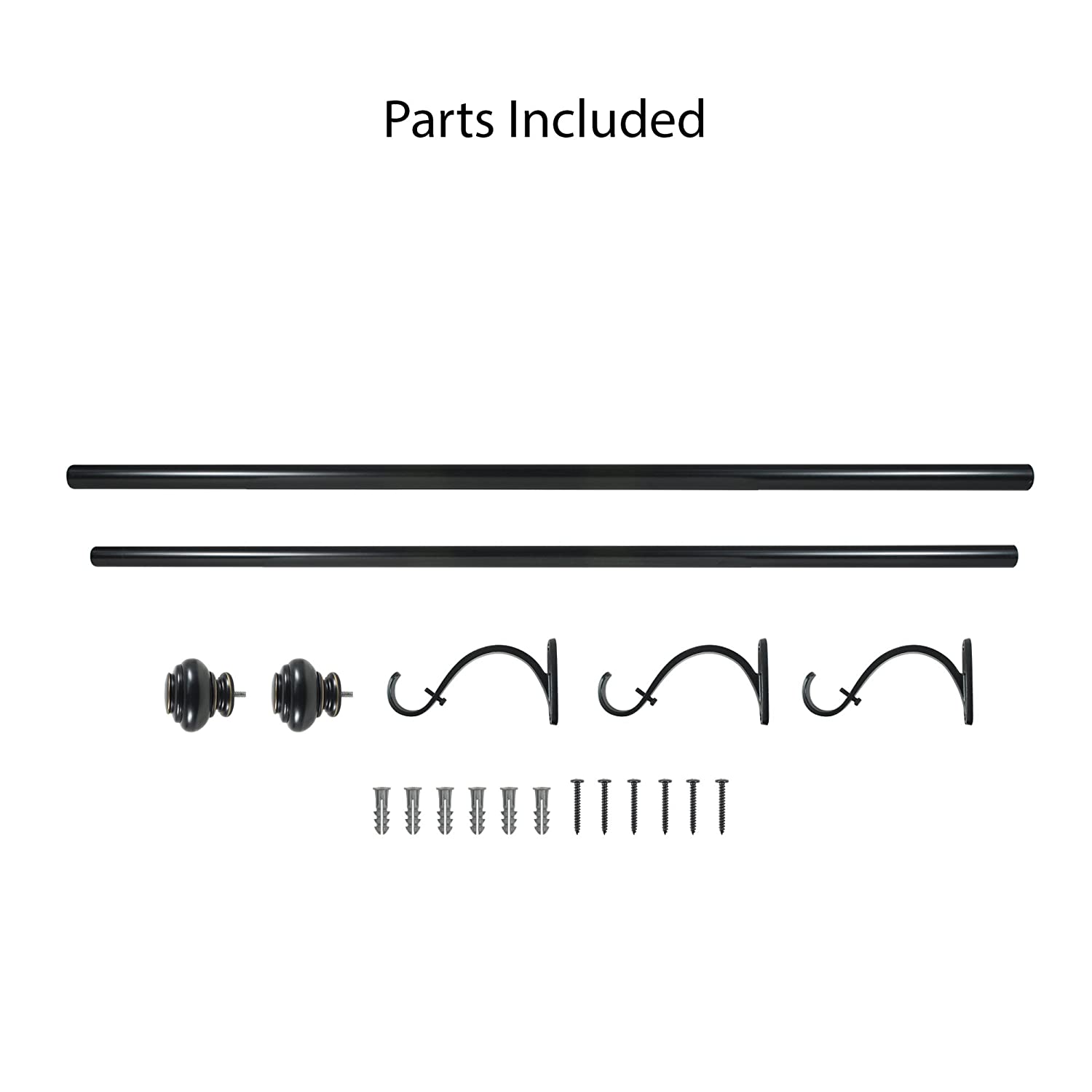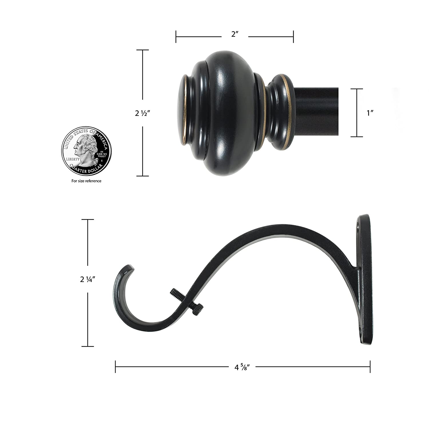 Update your décor with this elegant, adjustable curtain rod set. Chic cap finials and decorative scroll brackets bring a polished look to any room. 1 inch diameter. Elegant warm bronze finish. Brackets and mounting hardware included. Coordinates with double rod sets (sold separately) to offer the opportunity to complete multiple windows within the same room. Matching holdbacks available.