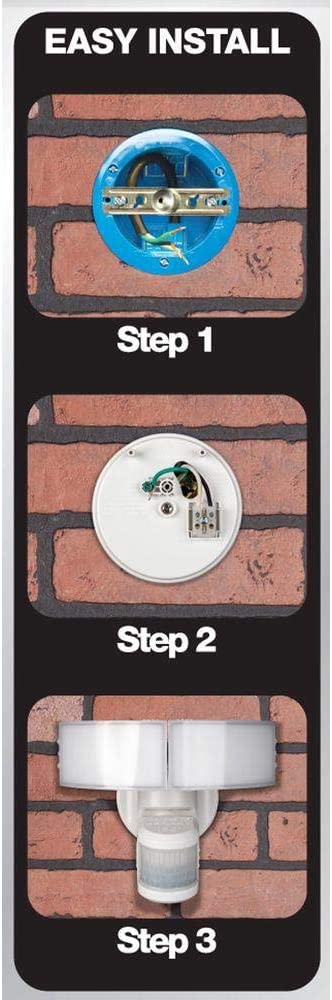 The New Defiant 180-Degree LED motion security light with DualBrite chases away nighttime darkness. This LED motion light provides seamless light coverage for increased safety, security and peace of mind. Never change a bulb again with this new LED technology. Install quickly and safely with three friendly, DIY easy steps to connect. The DualBrite feature beautifies, protects and saves energy by utilizing accent light from dusk-to-dawn and full light when motion is detected.