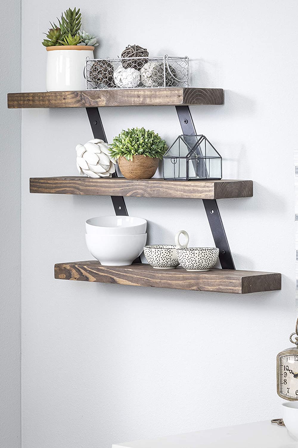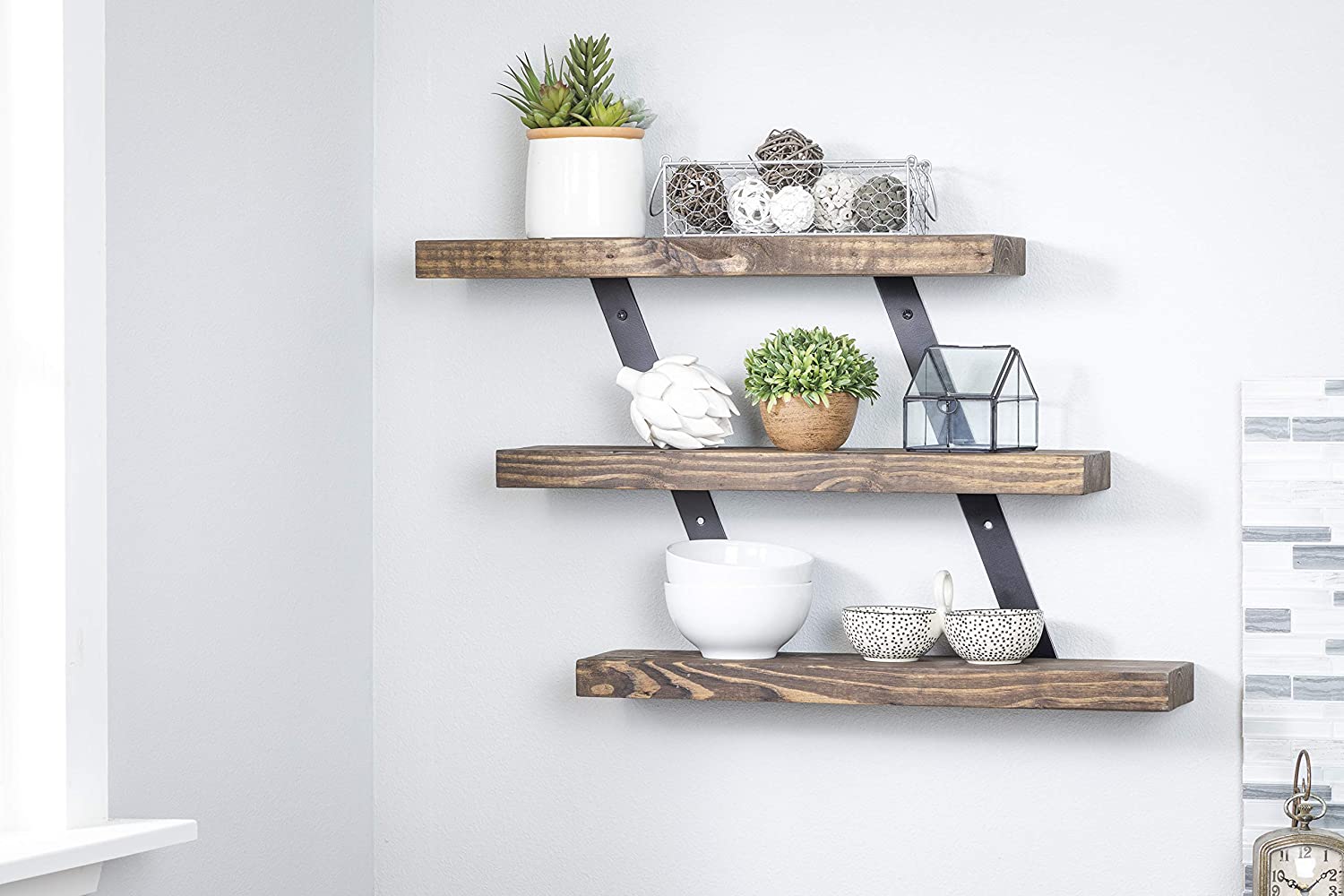 Revitalize your space with these easy-to-install shelves. The industrial, urban brackets are made from high-grade steel and the pine shelves bring great rustic appeal. These shelves are the perfect addition for displaying photos, decor, and more.