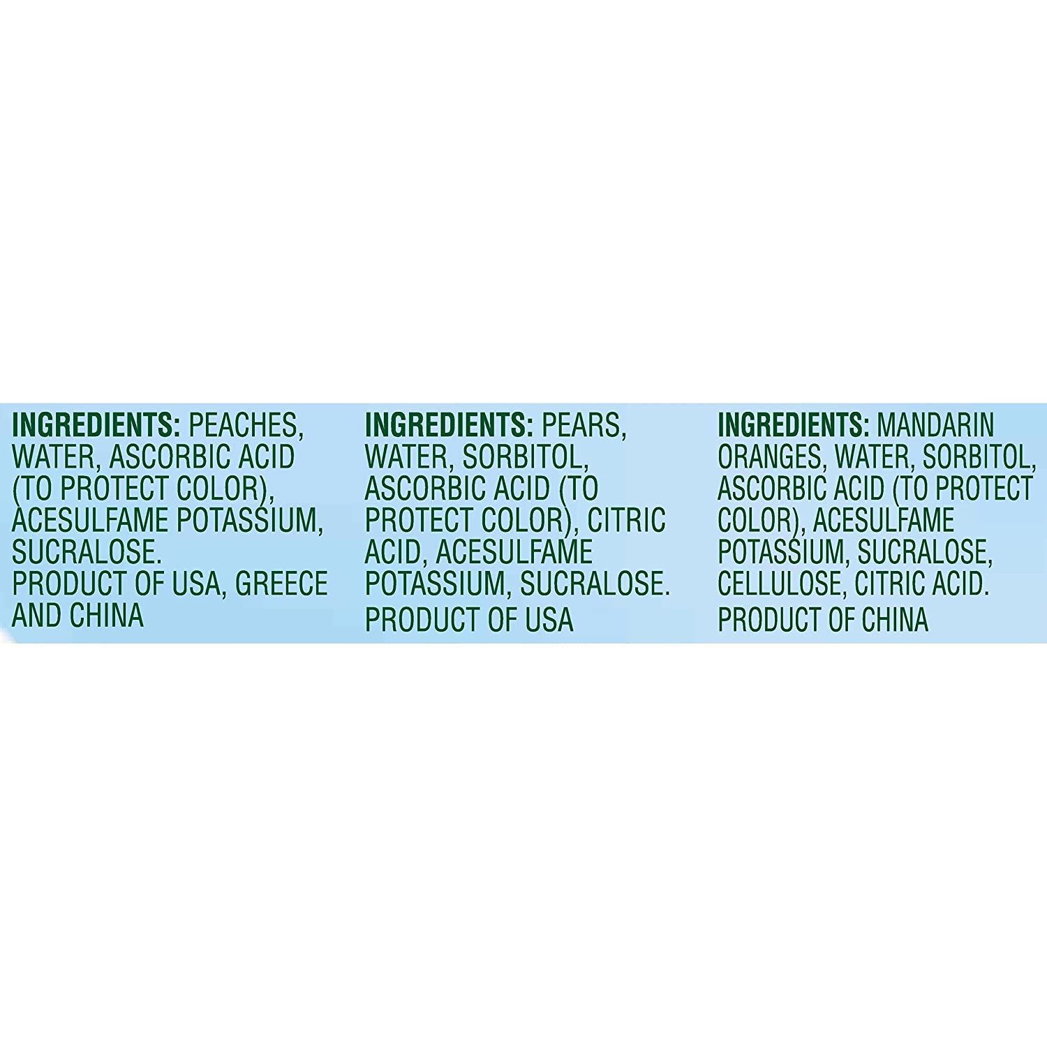 • DELICIOUS FRUIT SLICES: These bite-sized peaches, pears and mandarin oranges immersed in a naturally pure juice will excite your taste buds to another level. The fun snack can be eaten on-the-go and can be used with all your favorite combos and recipes.