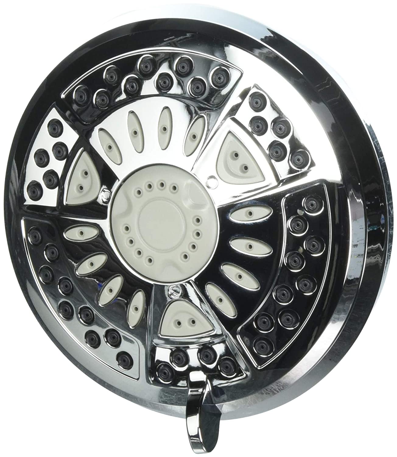 Delta, chrome, 6 setting shower head, soft, rubber touch clean spray holes, installs in minutes, spray settings include shampoos rinsing spray, slow massage spray, drenching spray, soft drench with full spray & soft rain spray, pause feature reduces water to a trickle, 1.75 gpm @ 80 psi.