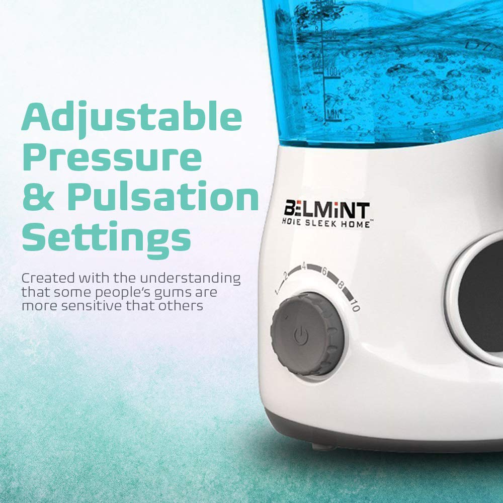 ADJUSTABLE WATER PRESSURE: The Belmint electric flosser features 10 pressure settings, range of 0 to 90 PSI w/1400 pulses per minute. Pressure and pulsations cleans deep between teeth and gumline, removing harmful bacteria and debris that traditional brushing and string flossing can’t reach