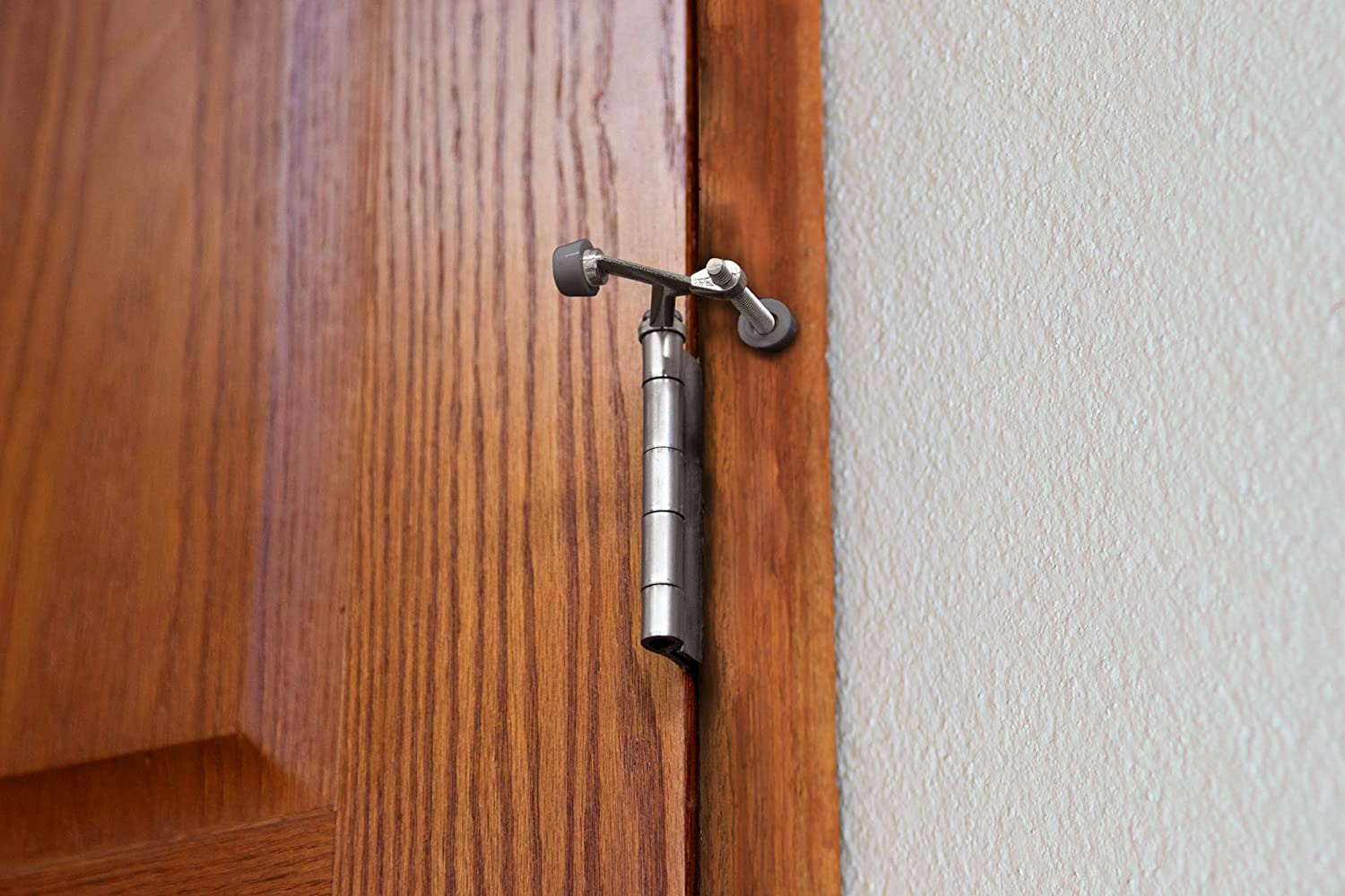 • Rubber cushion protects walls and doors
