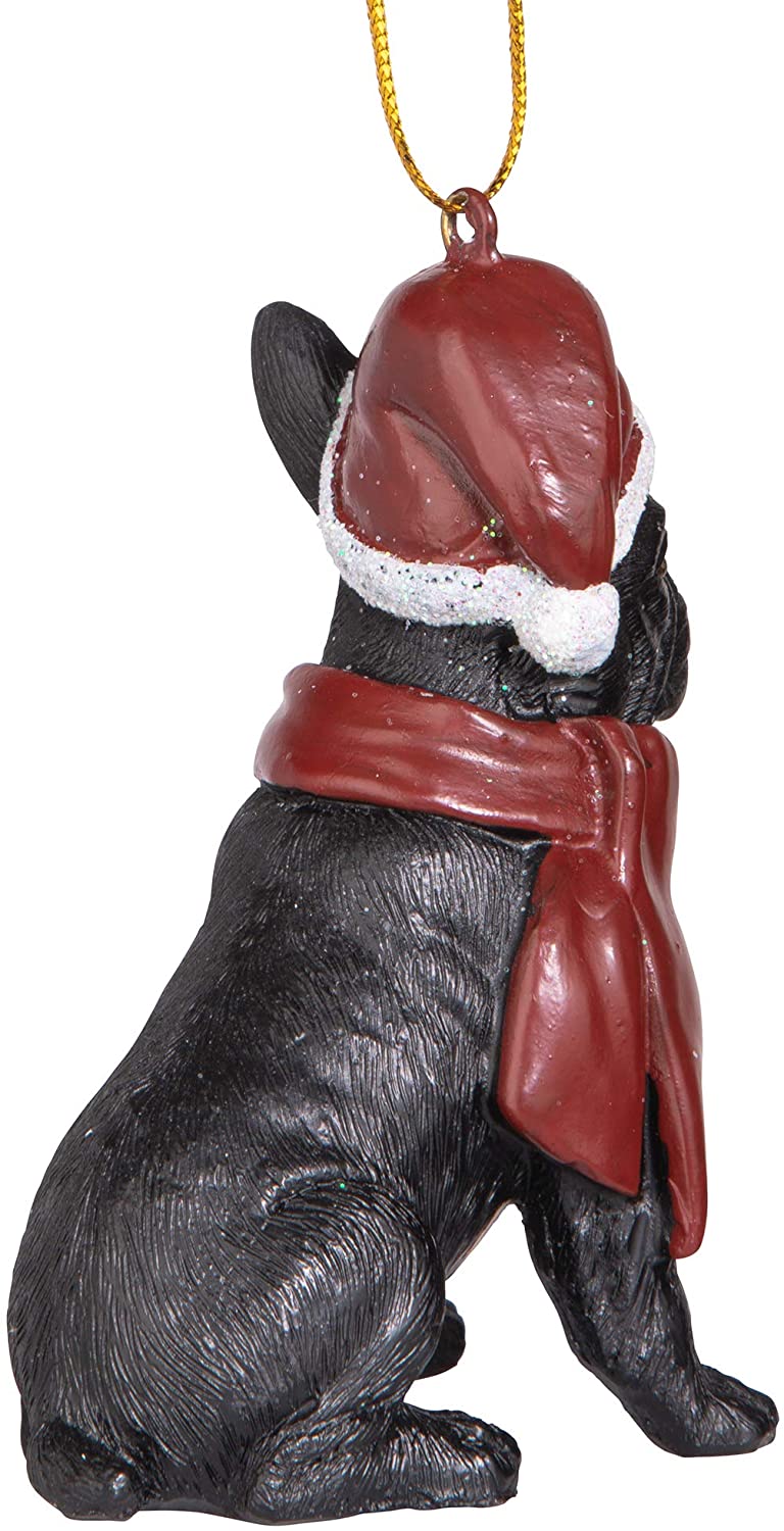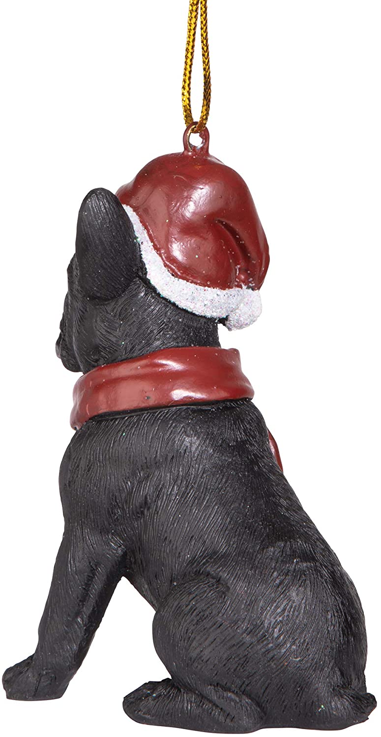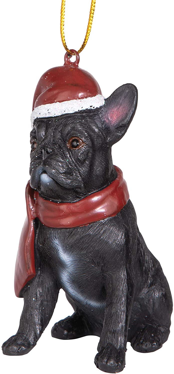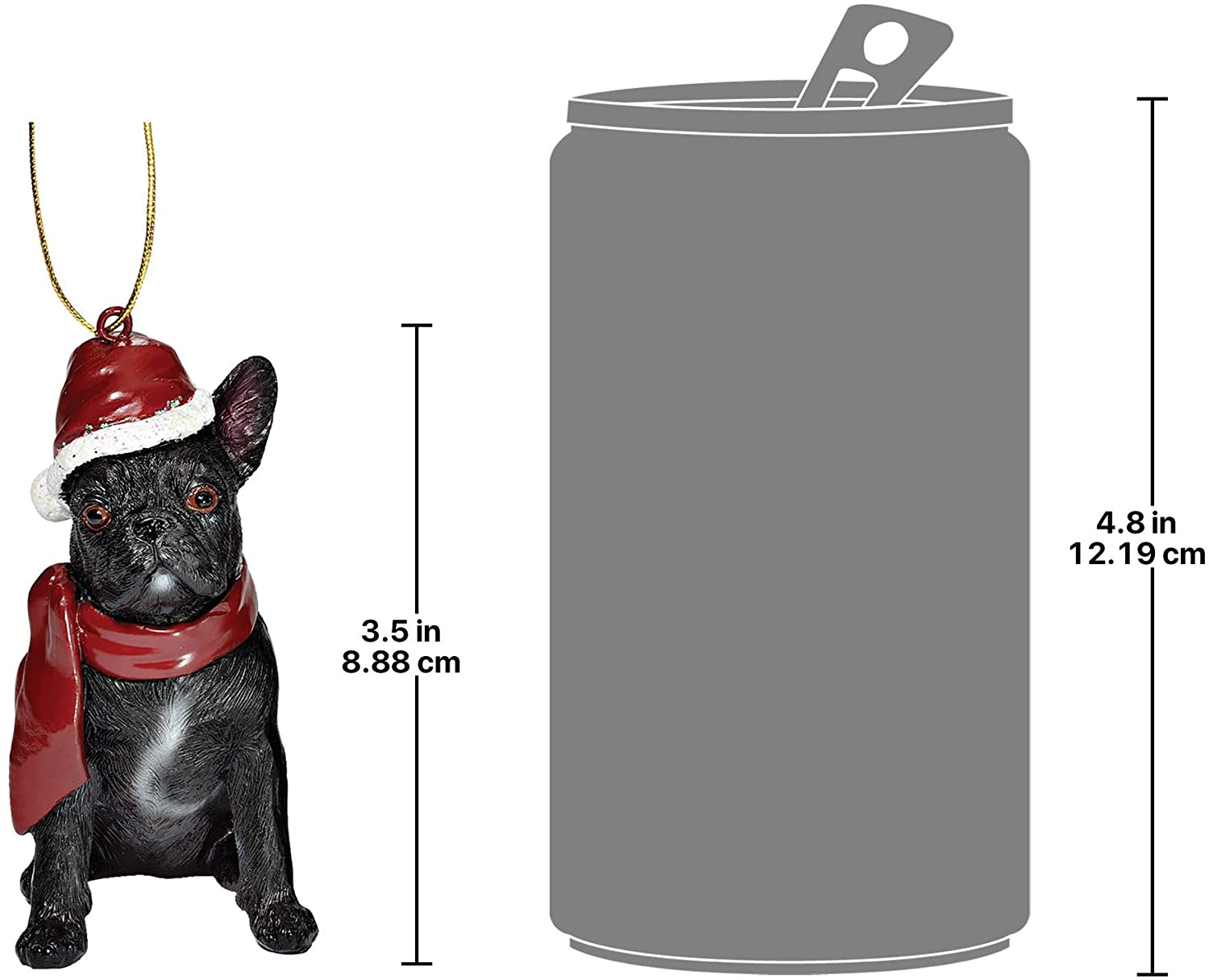 With a festive Santa hat and red scarf, this adorable French Bulldog dog ornament has neither a "bark" nor a "bite" worth worrying over! Our Design Toscano exclusive French Bulldog dog ornament is realistically sculpted, cast in quality designer resin and hand painted for the "discriminating dog lover". The perfect canine gift for French Bulldog dog aficionados and a fun way to include your pets in holiday decorating! Approx. 2½ "Wx1½ "Dx3½ "H. ½ lb. More dog breed ornaments available: French Bulldog, Weimaraner, Beagle, Dalmatian, Chihuahua, Dachshund, "Yorkie" Yorkshire Terrier, Pointer, Border Collie, Mini Schnauzer, Cavalier King Charles Spaniel, German Shepherd, Boston Terrier, Boxer, Bulldog, Golden Retriever, Siberian Husky, Black Labrador, Maltese, Pit Bull, White Poodle, Pug, Rottweiler, Doberman, Welsh Corgi