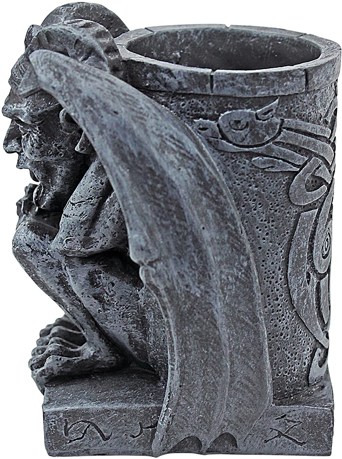 On a desk or credenza, there's no one more worthy of holding your favorite writing implements than this crouching Gargoyle sculpture! Cast in quality designer resin, he's finished in faux ancient stone. Pens sold separately. 3 "w x 3"d x 4"H 1 lb.