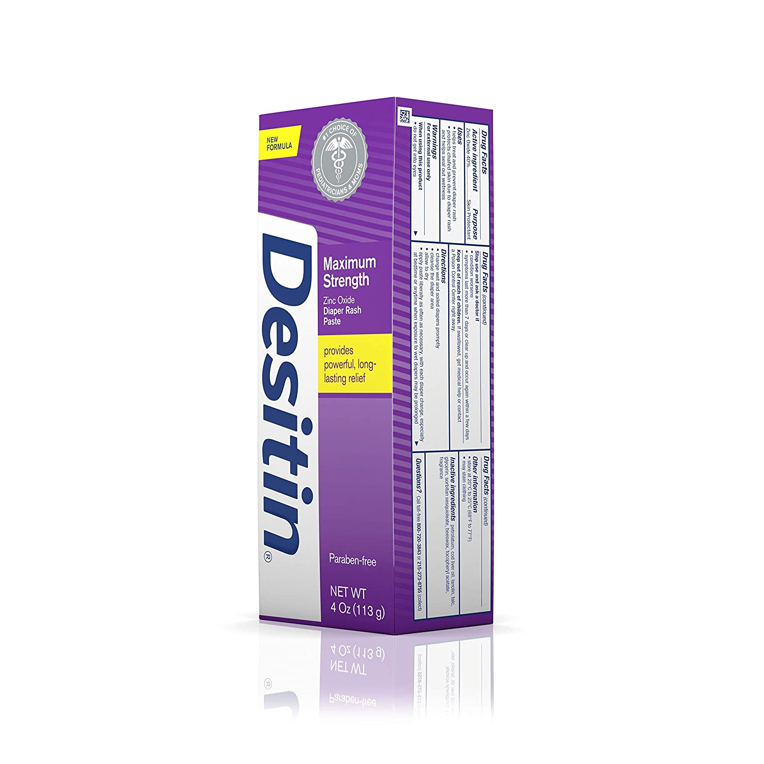 - 4-ounce tube of Desitin Maximum Strength Diaper Rash Paste with 40% zinc oxide works on contact to treat and prevent diaper rash discomfort