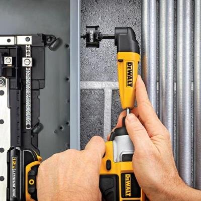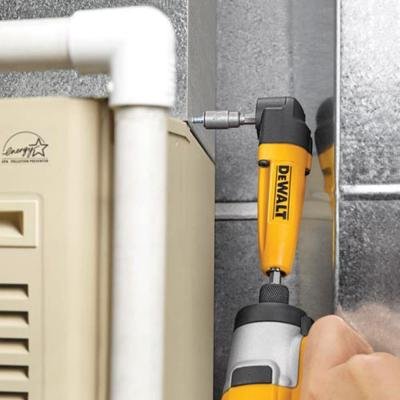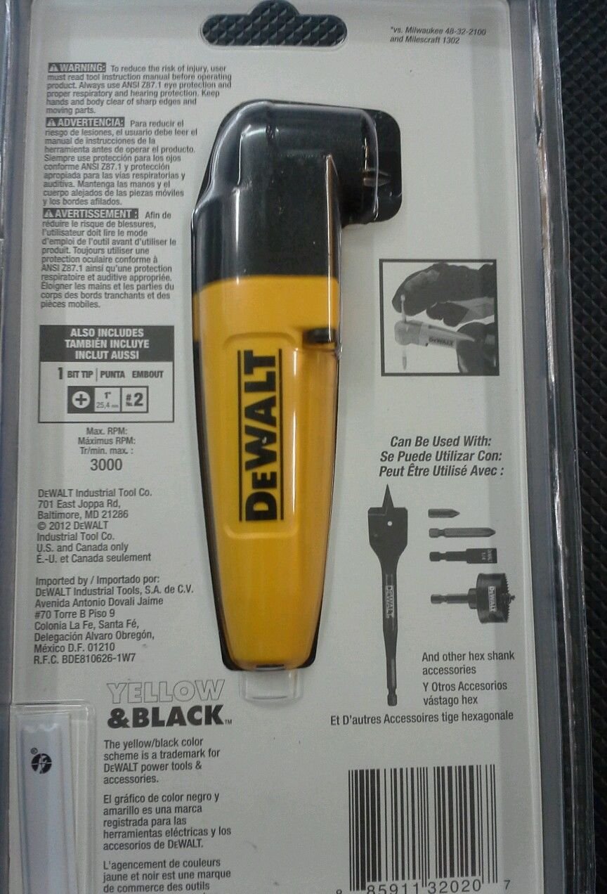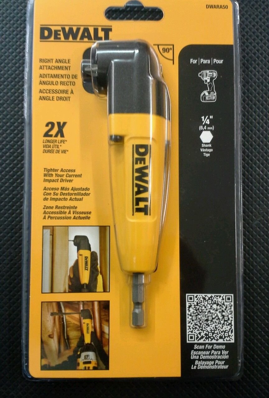 Increase the productivity and versatility of your existing drill with the DEWALT DWARA50 Right Angle Drill Adapter. Just tighten this adapter in your chuck and you instantly have access to tight and hard to reach spaces. For use with both corded and cordless drills.