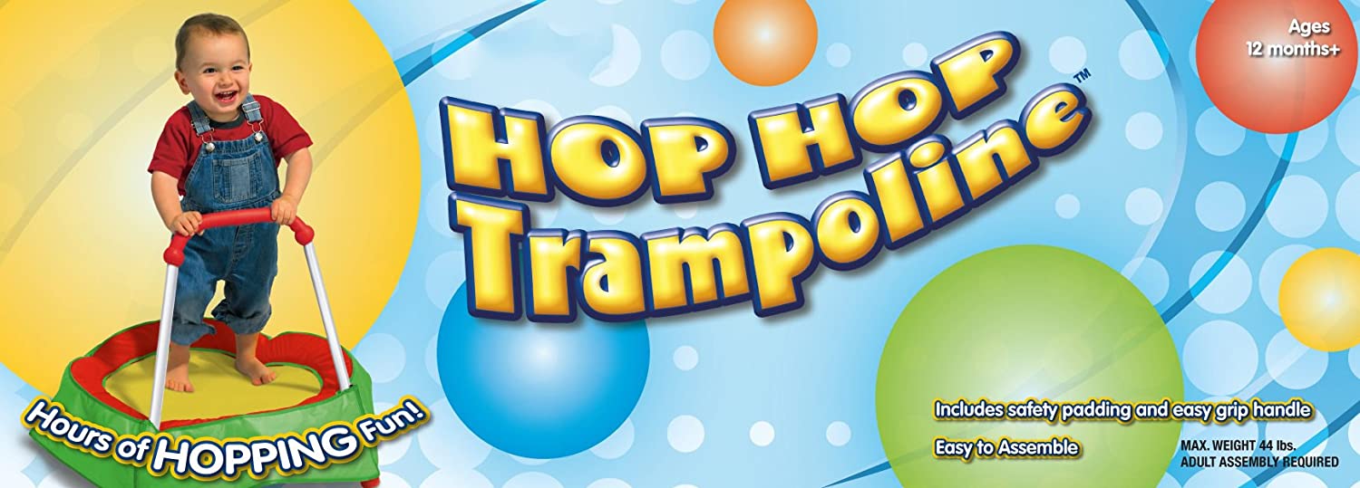 Hip Hop Trampoline is the best first trampoline for little ones. Kids will have hours of hopping fun, a perfect indoor energy burner. Features sewn padded cover for safe bouncing and easy grip handle. Low height makes storage easy. Jumping helps build strength and helps improve balance and coordination.
