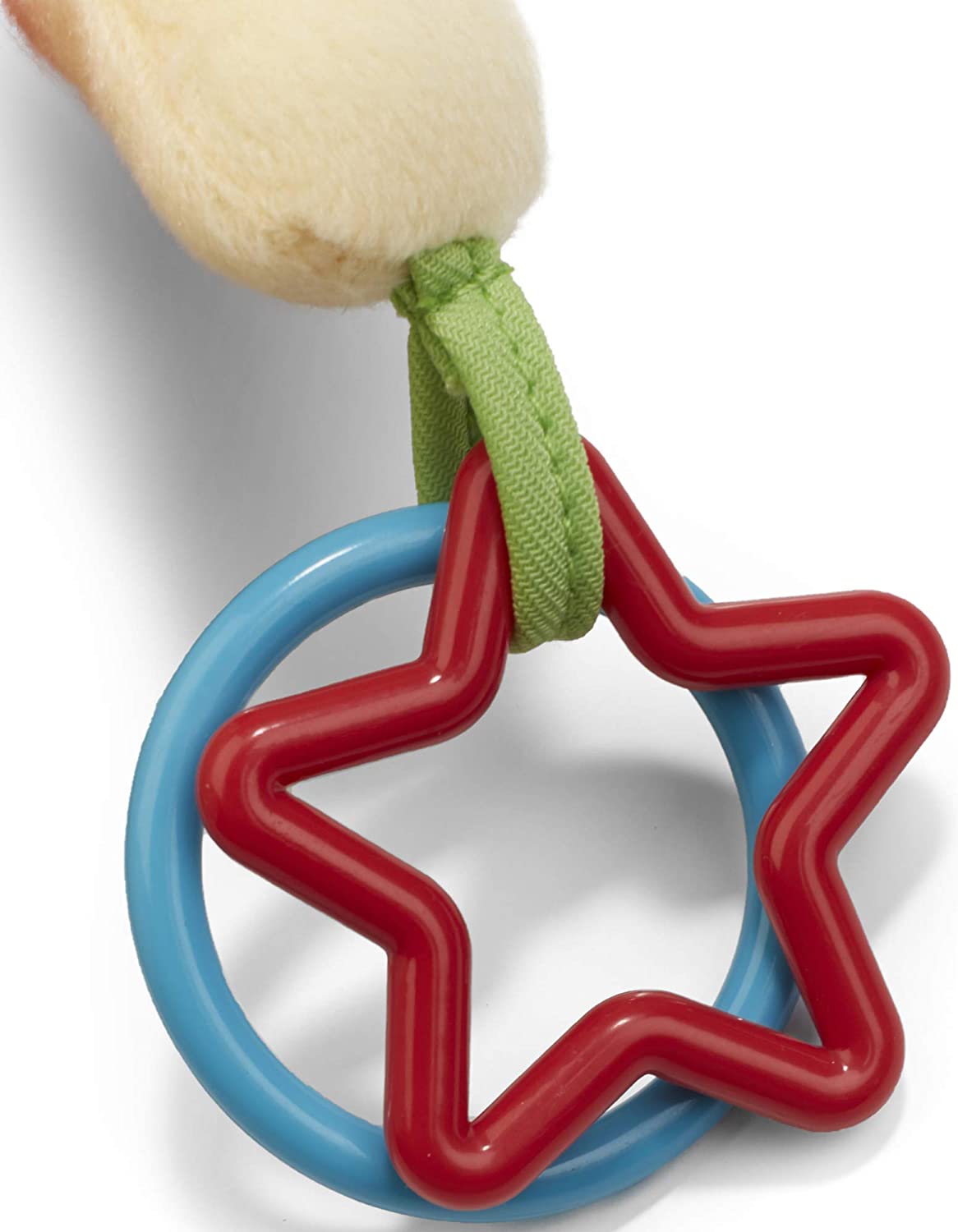 Includes a squeaker, crinkle textures, a chime, rings, and a lady bug ring
