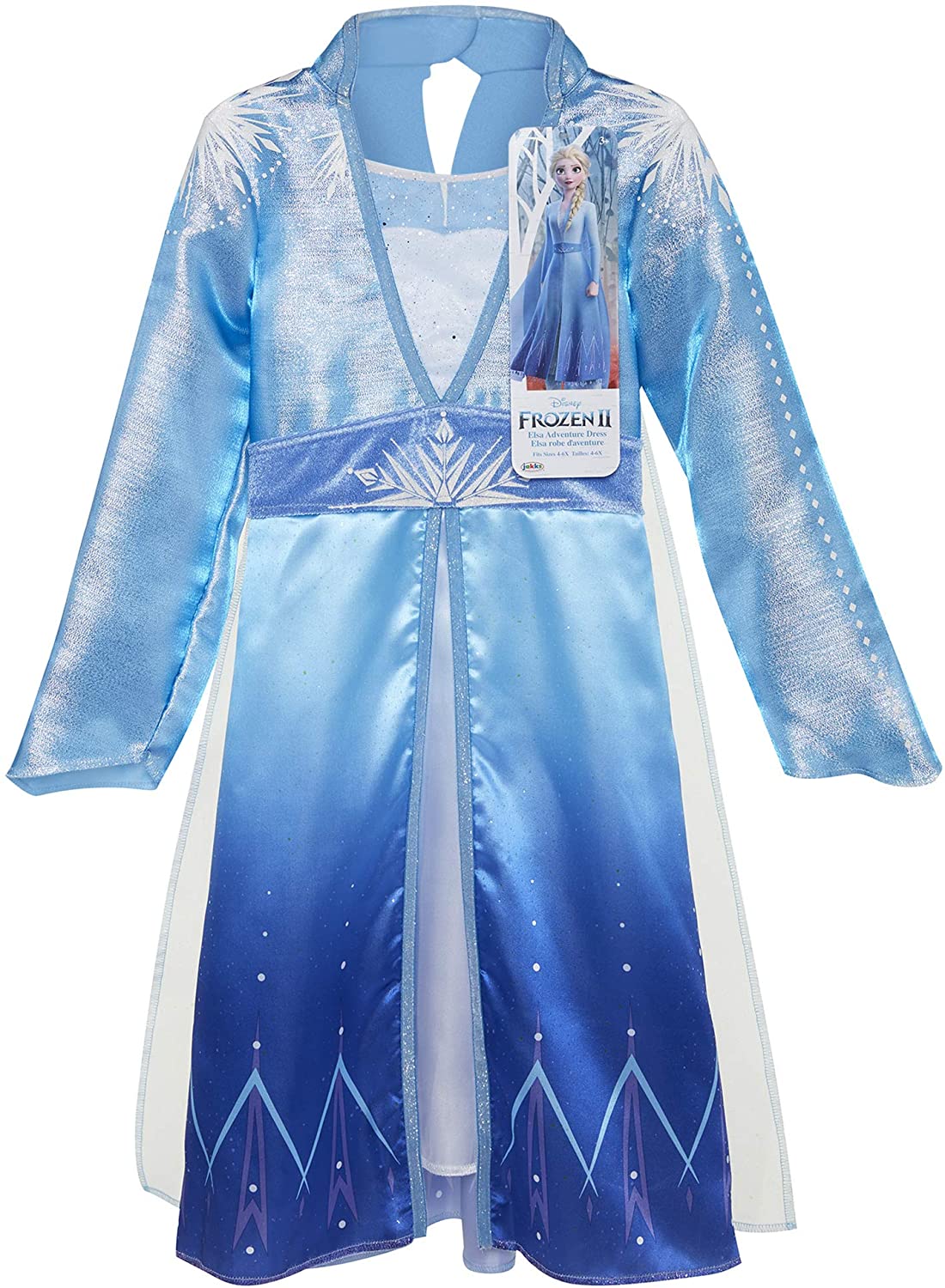 The epic adventure continues in Disney Frozen 2, the exciting sequel to the hit film, Frozen; Join your beloved friends, Anna, Elsa, Kristoff, Olaf and Sven as they venture beyond Arendelle's gates to strengthen their bonds and make new discoveries that will change their lives forever. Get ready for legendary travels in Disney's Frozen 2 Elsa Adventure Dress; This dress is inspired by Elsa's iconic fashion in the film, with a stunning sheer cape and ice crystal details. You'll be ready to go anywhere your journey takes you!