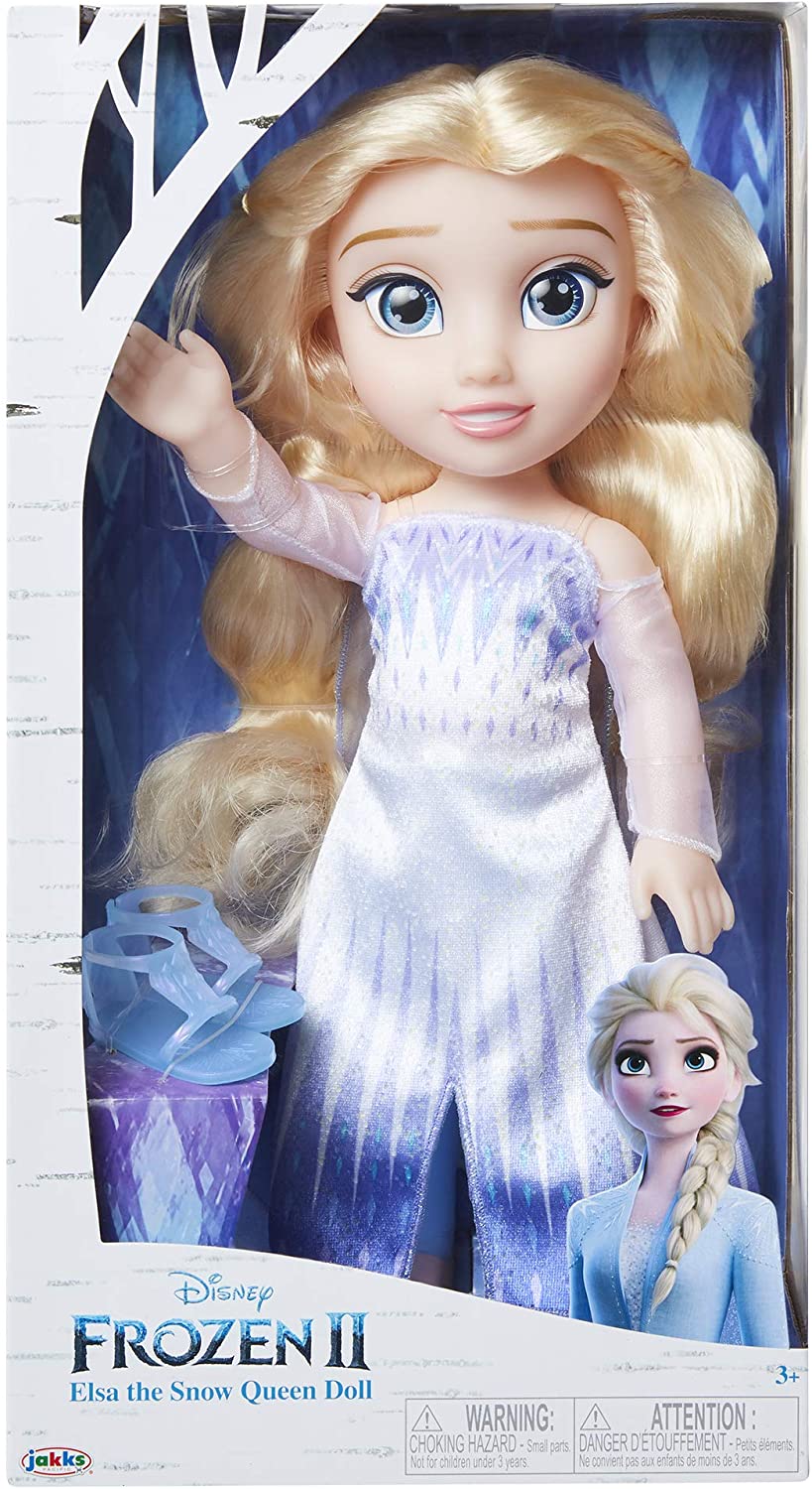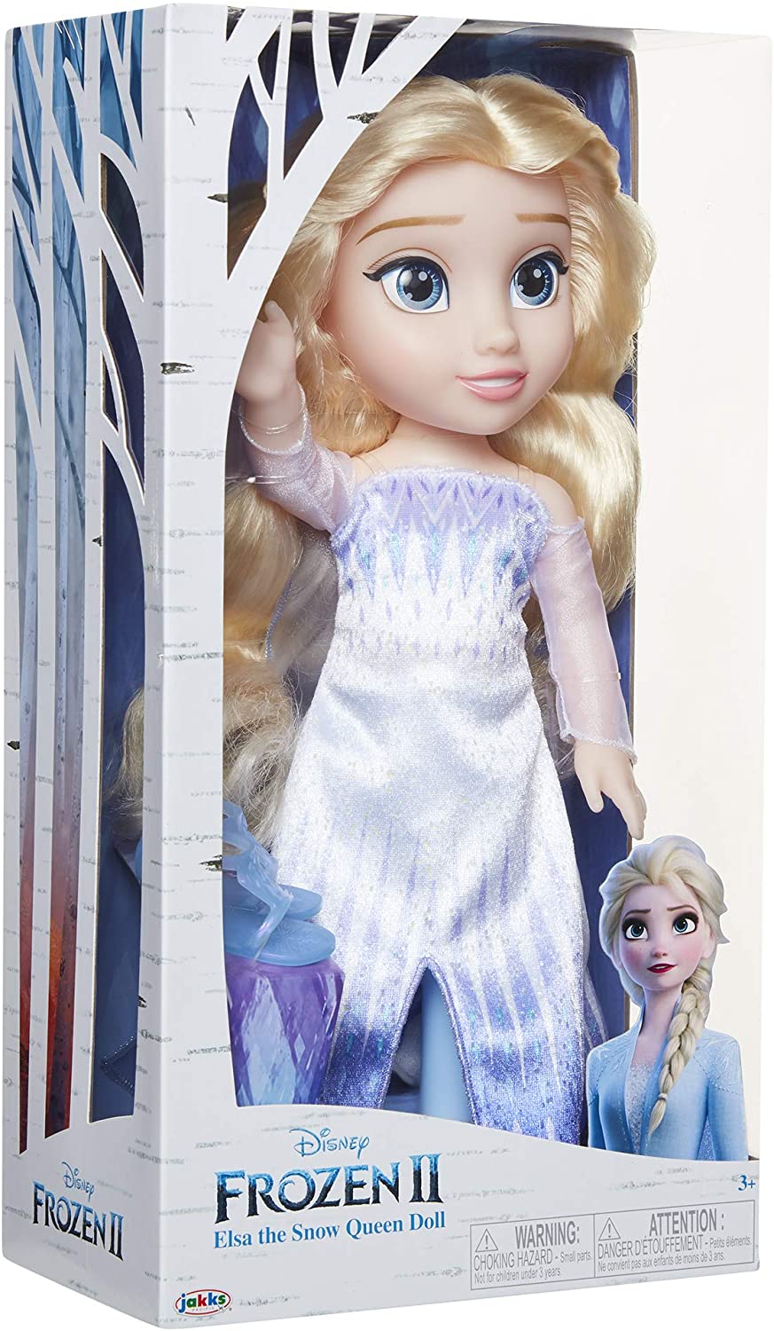 The epic adventure continues in Disney Frozen 2, the exciting sequel to the hit film, Frozen! Join your beloved friends, Anna, Elsa, Kristoff, Sven and Olaf as they venture beyond Arendelle's gates to strengthen their bonds and make new discoveries that will change their lives forever. Join Elsa at the end of her journey of finding out who she is meant to be and the mysteries of her past with Disney Frozen 2 Elsa the Snow Queen Doll! Elsa, as the Snow Queen, is fearless and strong, with a generous heart. She is dressed in her iconic fashion, inspired by her final moments from the film. The outfit includes a beautiful, shimmering white dress with hints of purples and blues and a delicate sheer winged cape. To add to this look, Elsa’s hair is stunning, as it cascades down her back, offering extra hair play fun!