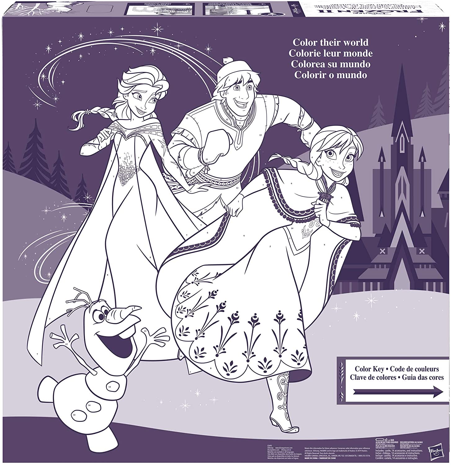 - Moving balcony: put a Disney Frozen Elsa or Anna fashion doll in the built-in doll stand (Each sold separately. Subject to availability.) and move them up and down the castle