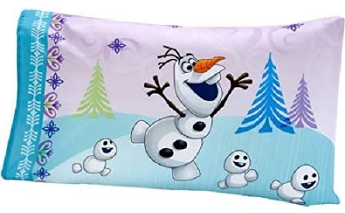 Disney Frozen Unleash the Magic 4pc Toddler Bedding Set: This sweet Disney Frozen 4pc toddler set includes a soft purple comforter featuring sisters Ana and Elsa with their chilly friend Olaf amidst a swirling pattern of snowflakes Includes a double-sided pillow case featuring Ana, Elsa and Olaf skating on one side, and adorable Olaf with his sweet Snowgies on the other The top sheet has an allover pattern of the 2 sisters, and the fitted sheet is a pretty purple and pink pattern Sheets fits a standard size toddler bed, that uses a 28" x 52" crib/toddler mattress Comforter measures 57" x 42" Pillowcase measures 20" x 30" Made from soft, 100 percent polyester microfiber