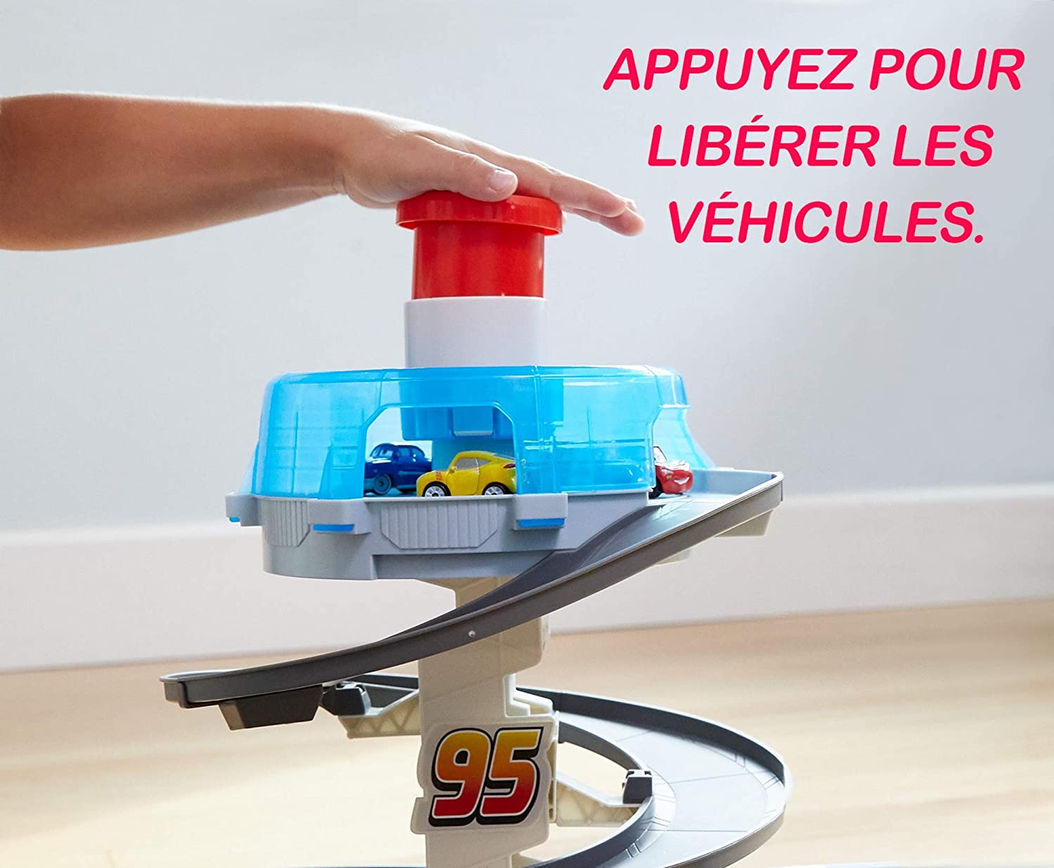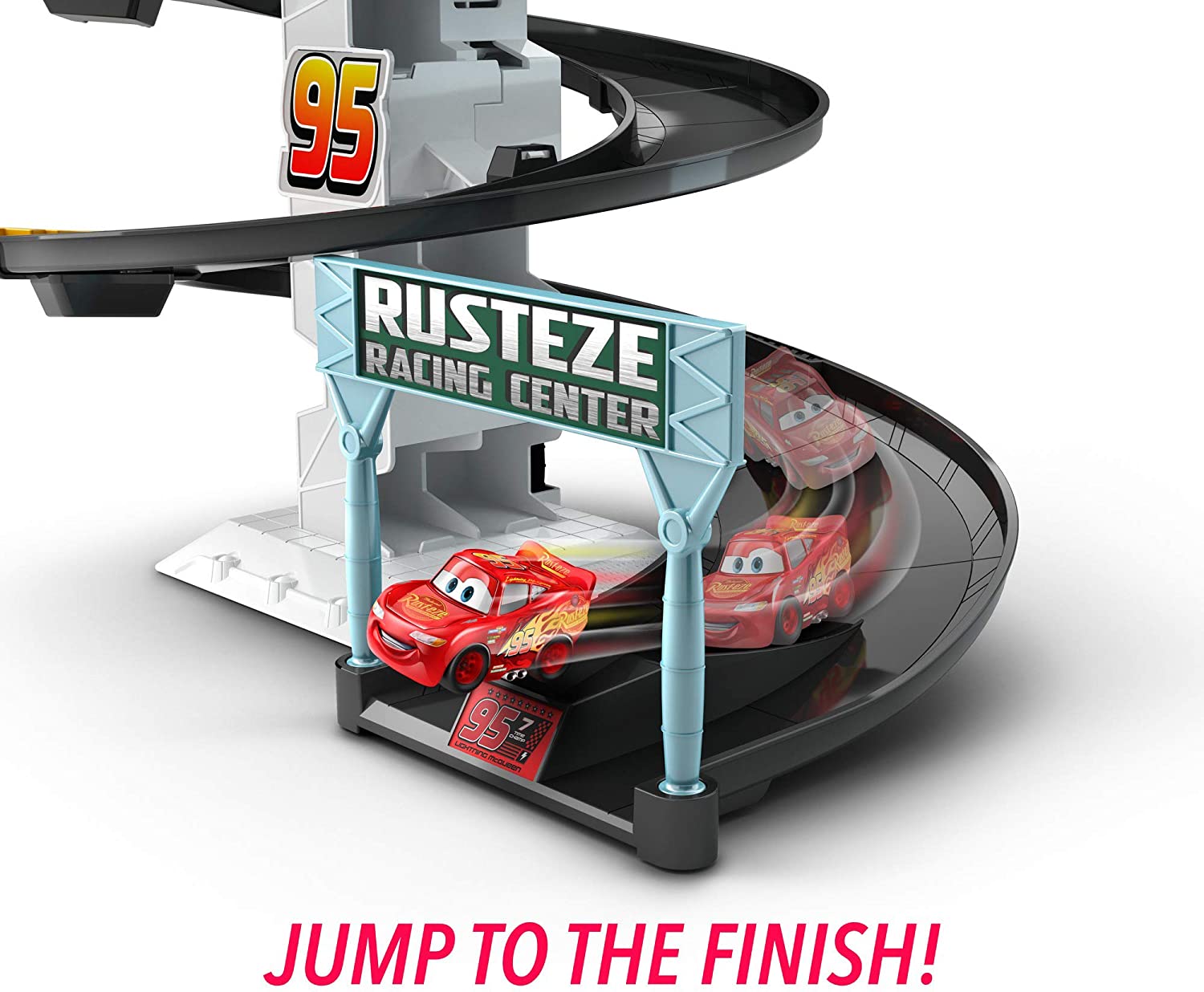 This Disney/Pixar's Cars Mini Racers playset packs unique action and spinning thrills. Set your best competitors at the top of the spiral course, and then pump, pump, pump the red button. The mini vehicles will blast off at high speed! Watch the cars race and spin down the course as they hit bumpy detours along the way. Try to avoid the diverter and crash wall or you will shoot off of the track and lose the competition! This speedy cool set stores up to 12 Mini Racers and is compact for storage and fun on the go, go, go. Includes Mini Lightning McQueen. Other Mini Racer vehicles sold separately, subject to availability.
