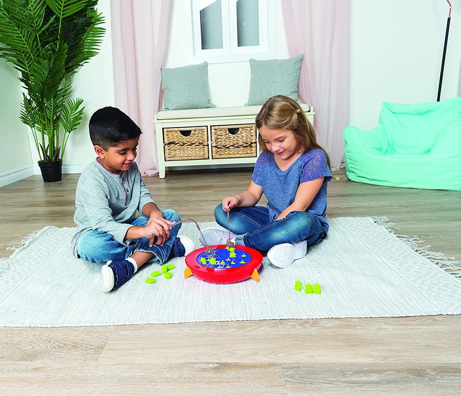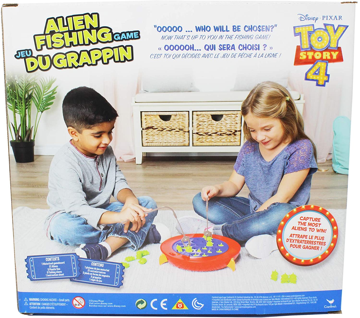 The classic Fishing Game has never been more fun! This Toy Story 4 Alien Fishing Game features little aliens in a cool spaceship. It's your job to grab the aliens with your claw as the spaceship spins. The player who collects the most aliens wins! Recommended for two to four players, ages four and up. Requires 2 AA batteries (not included).