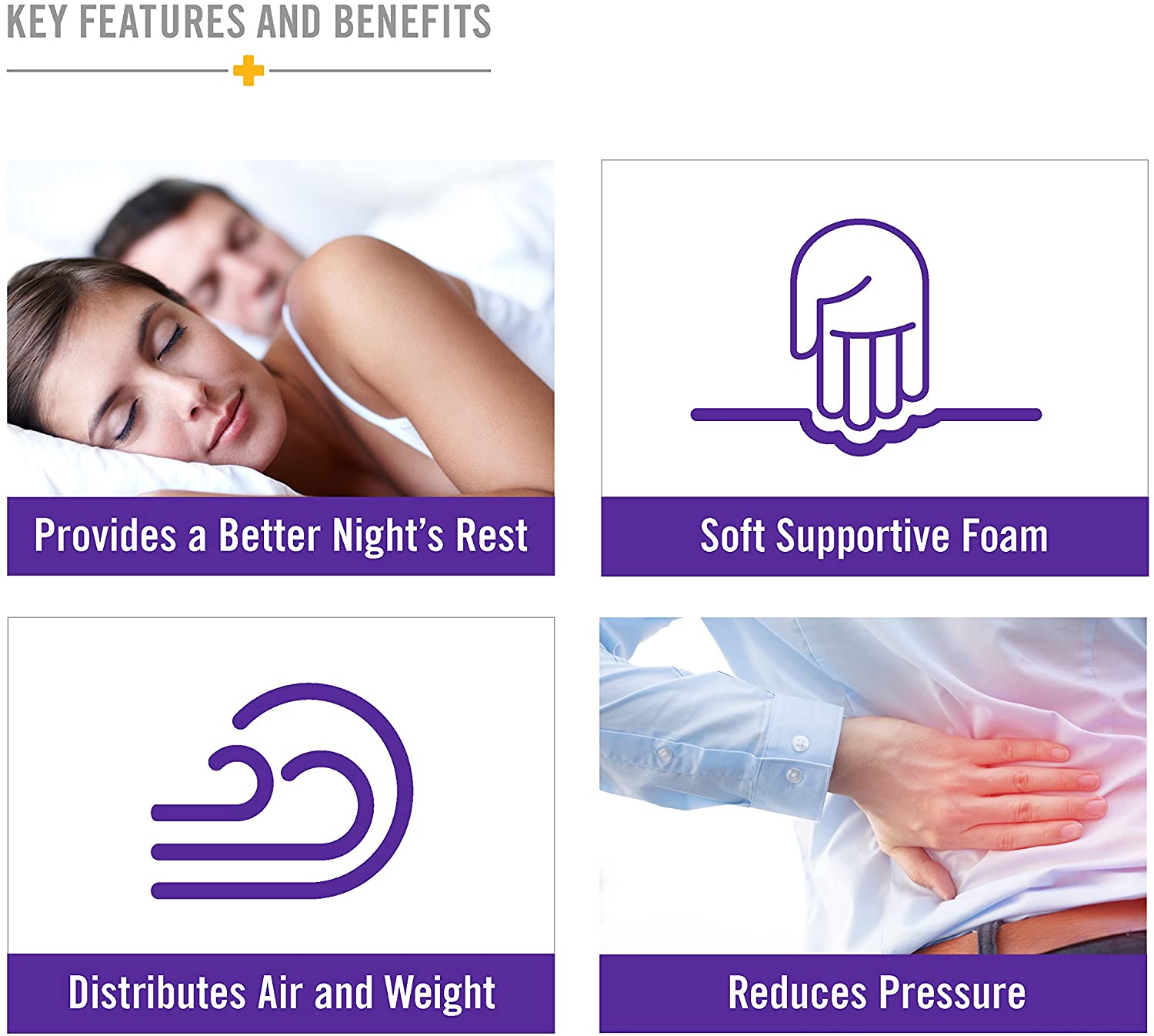 - Soft, comfortable sculpted medical-grade foam provides great air circulation and weight distribution.