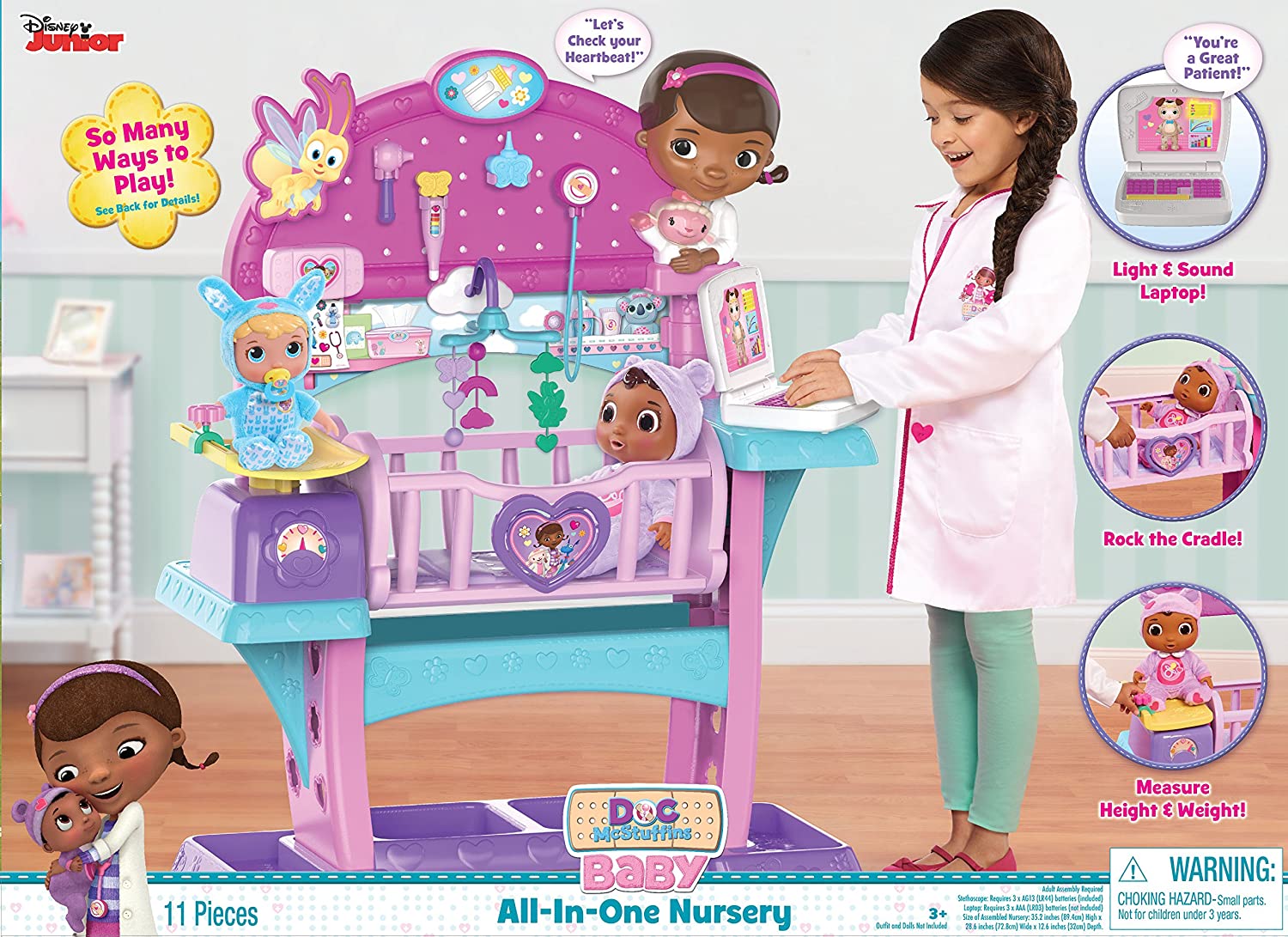 - Doc McStuffins Baby Check Up All-in-One Nursery offers top-notch care for your little one’s baby dolls.