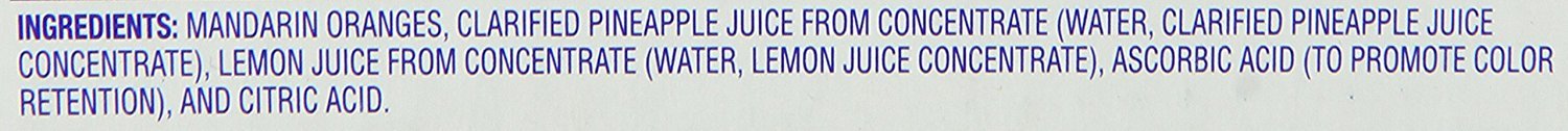 - NATURALLY GLUTEN FREE: DOLE Mandarin Oranges in 100% Fruit Juice are a rich source of Vitamin C and are made from all natural fruit and non-GMO ingredients. They're naturally gluten free and make a great snack!