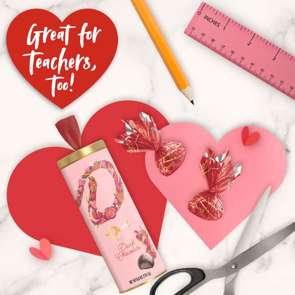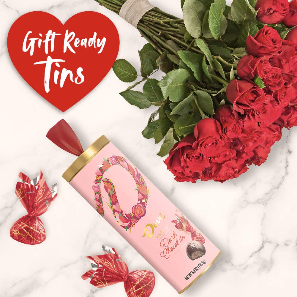 - Contains one (1) 6-ounce chocolate gift tin of DOVE Dark Chocolate Truffles Valentine Candy