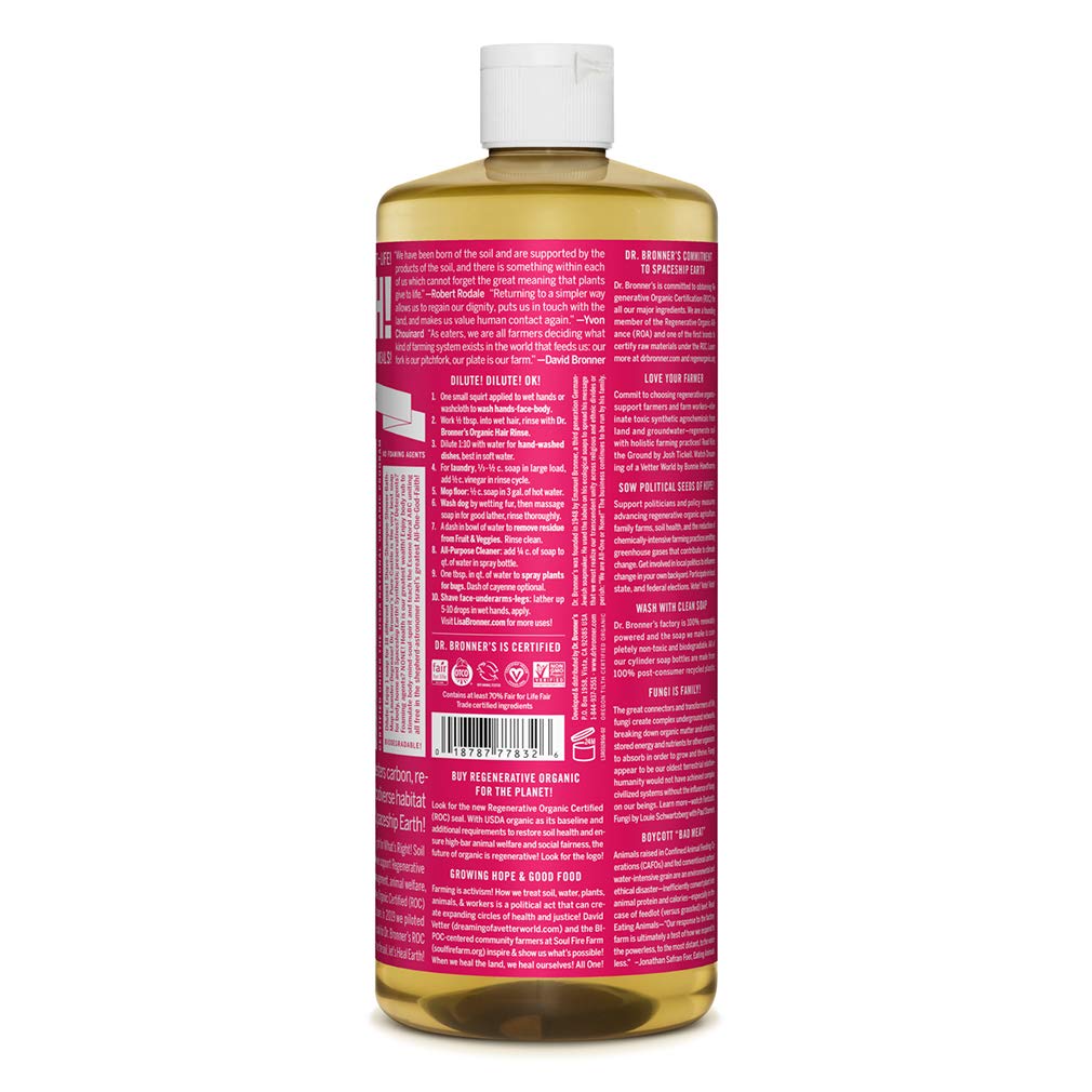 - GOOD FOR YOUR BODY & THE PLANET: Dr. Bronner's liquid soaps are fully biodegradable & use all-natural, vegan ingredients that pose no threat to the environment. Our products & ingredients are never tested on animals & are cruelty-free.