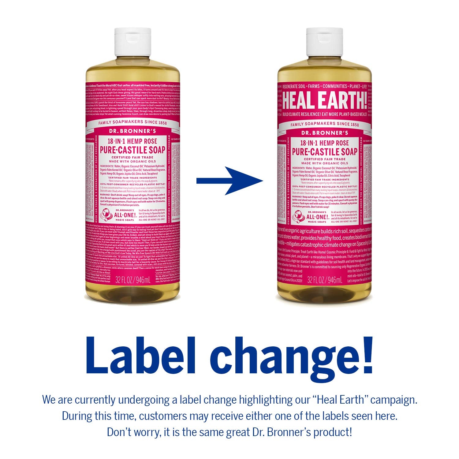 - PACKAGED IN 100% POST-CONSUMER RECYCLED PLASTIC BOTTLES: Dr. Bronner's is diverting discarded plastic from landfills by using & increasing demand for recycled plastic bottles. This eliminates waste & has a positive environmental impact!