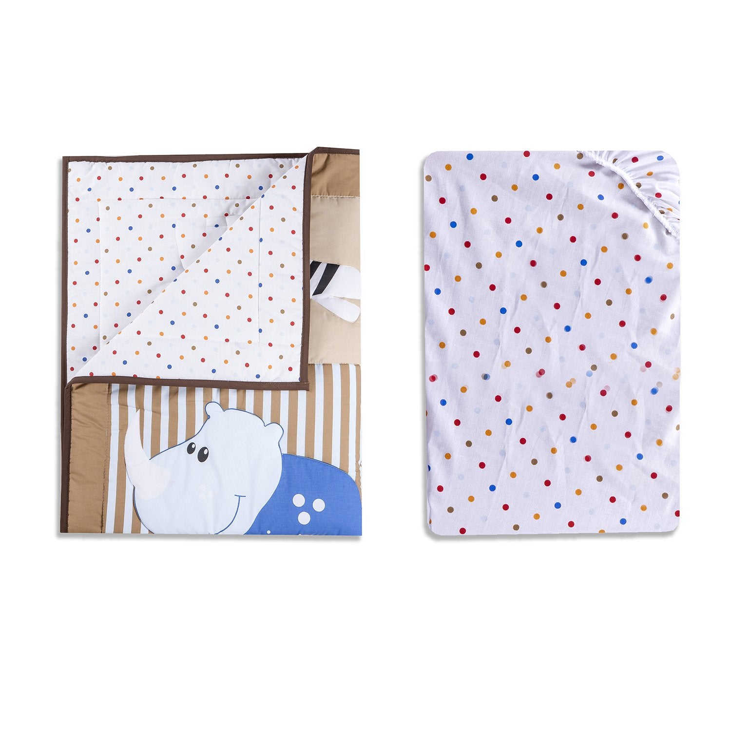 - 3-piece crib bedding set includes 1 comforter, 1 bumper and 1 fitted sheet