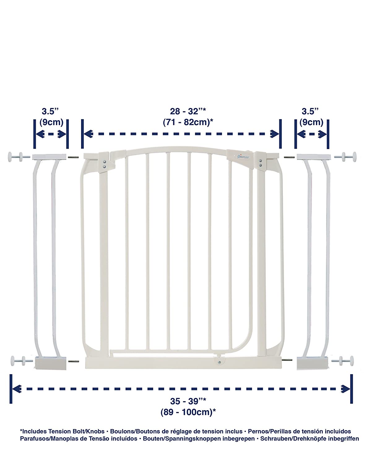 - VERSATILE AND DEPENDABLE- Our Dreambaby Chelsea gate is loaded with features to not only help make your life easier but safer too. Versatile indeed, it can accommodate openings of 28-39 inches wide and is 29.5 inches tall. Using optional extensions sold separately, the gate can be extended up to 188 inches wide