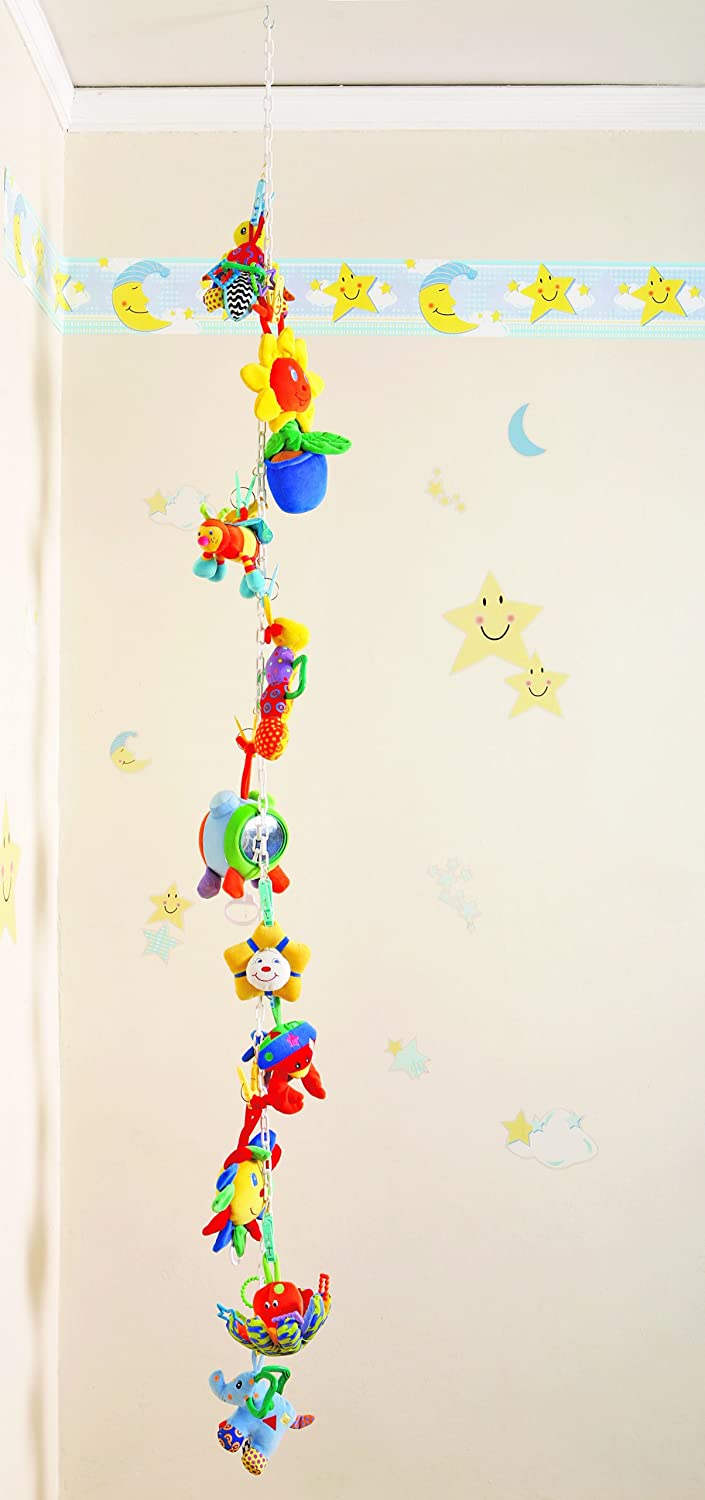 Dreambaby Super Toy Hammock And Toy Chain is easy to install with wall attachments included and will fit in most corners. A bonus toy chain is over 6 long. It holds toy and accessories like hats and glove and it includes 20 moveable hooks and ceiling attachments included.
