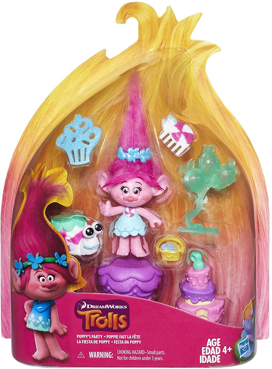 There will be no shortage of adventures with Poppy's Party story pack! As the heroic leader, Poppy lifts the spirits of everyone around her with positivity and the belief that, with a song in your heart, you can do anything! This story pack set has everything needed for a fun celebration, including a party cake, invitations, balloons, and more! This figure has wild hair and comes with a comb and Fuzzy Flair for tons of hairstyling fun. Get ready to throw a fantastic party together! DreamWorks Trolls Copywright 2016 DreamWorks Animation LLC. All rights reserved. Hasbro and all related terms are trademarks of Hasbro.