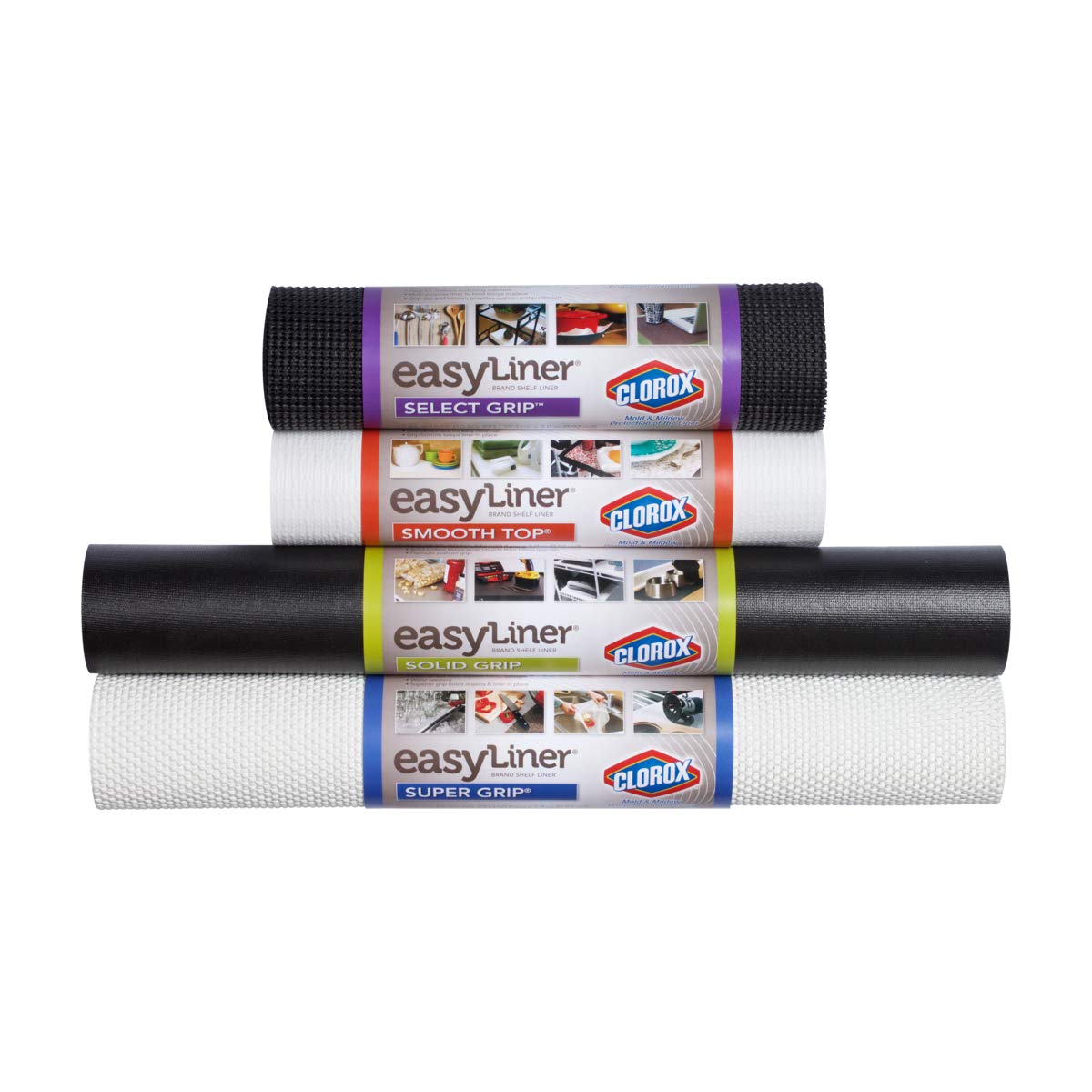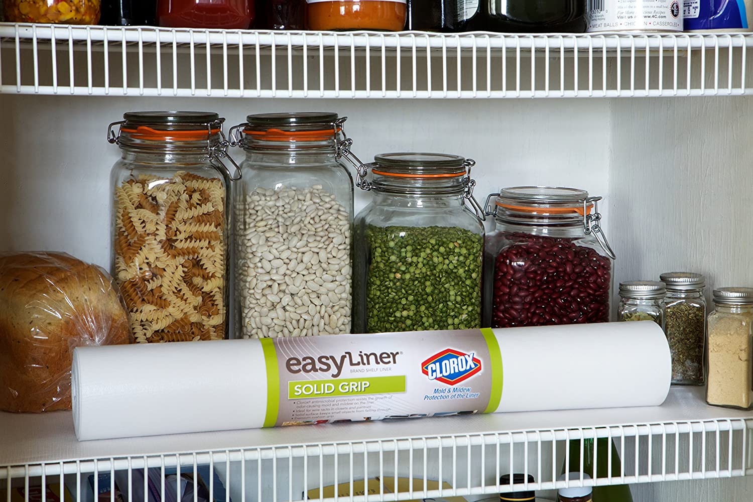 Designed with antimicrobial agents that inhibit mold and mildew growth to protect the liner, Solid Grip Easy Liner Brand Shelf Liner with Clorox is ideal for those areas in your home that need a little extra protection. The shelf liner is made of a sturdy material that provides a great base on wire shelving – preventing crumbs, spills and small objects from falling straight through and onto your surface. Featuring a premium non-adhesive cushion grip top and bottom to keep the liner in place, Solid Grip Easy Liner is ideal for a variety of areas in your home, including wire racks in closets and pantries. Plus, it’s easy to wipe up spills and messes, making clean-up a breeze.