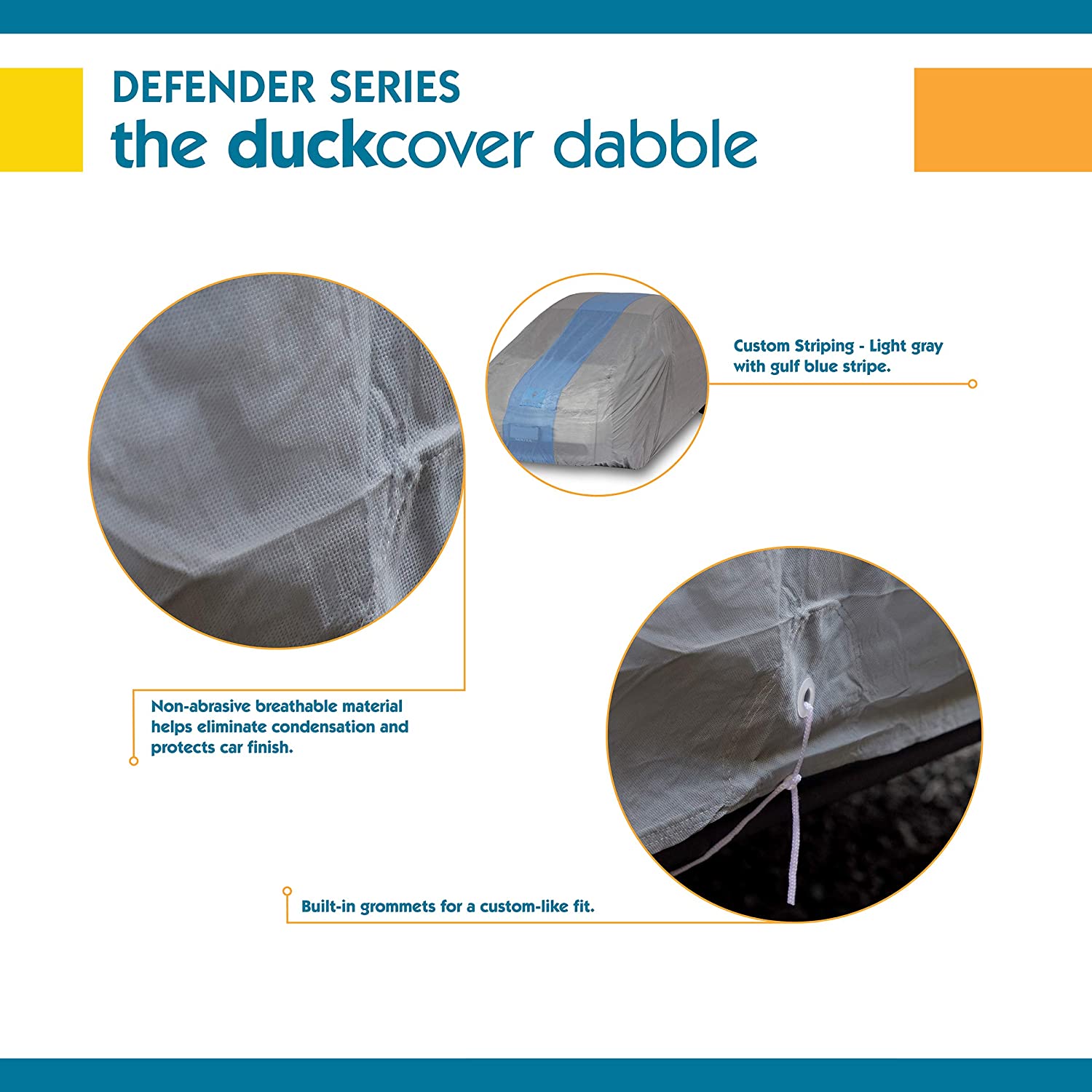 • CAR COVERS FOR AUTOMOBILES: Duck Covers Defender semi-custom covers are a single layer, UV treated and fully breathable auto covers; perfect for indoor storage and occasional outdoor use. This car cover protects your car from dust, debris and scratches