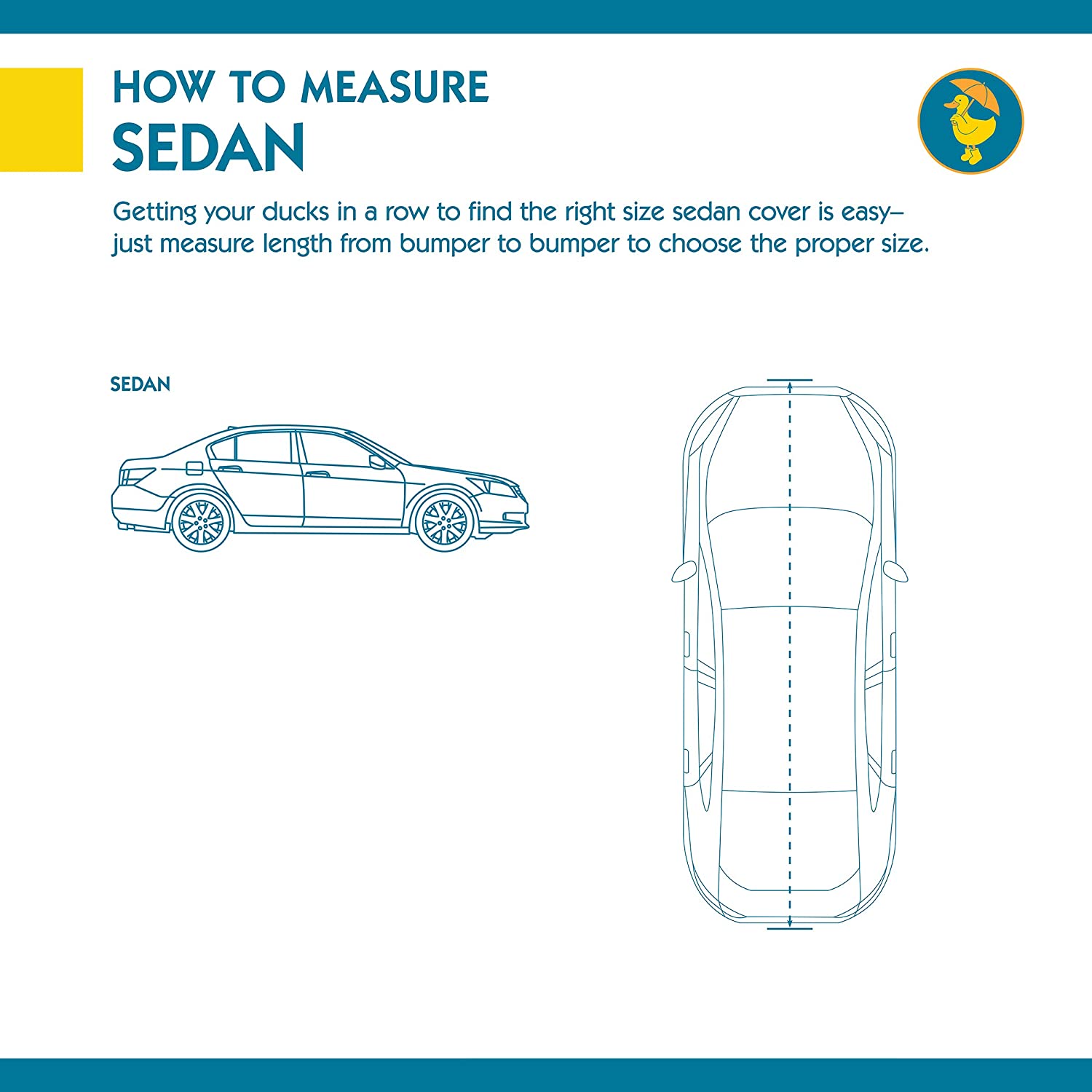 SEMI-CUSTOM CAR COVER: Duck Double Defender car cover fits sedans up to 16 ft. 8 in. (200 in. L). This car cover also features an elastic hem for a secure, custom fit for your vehicle as well as non-scratch, tie-down grommets and rope
