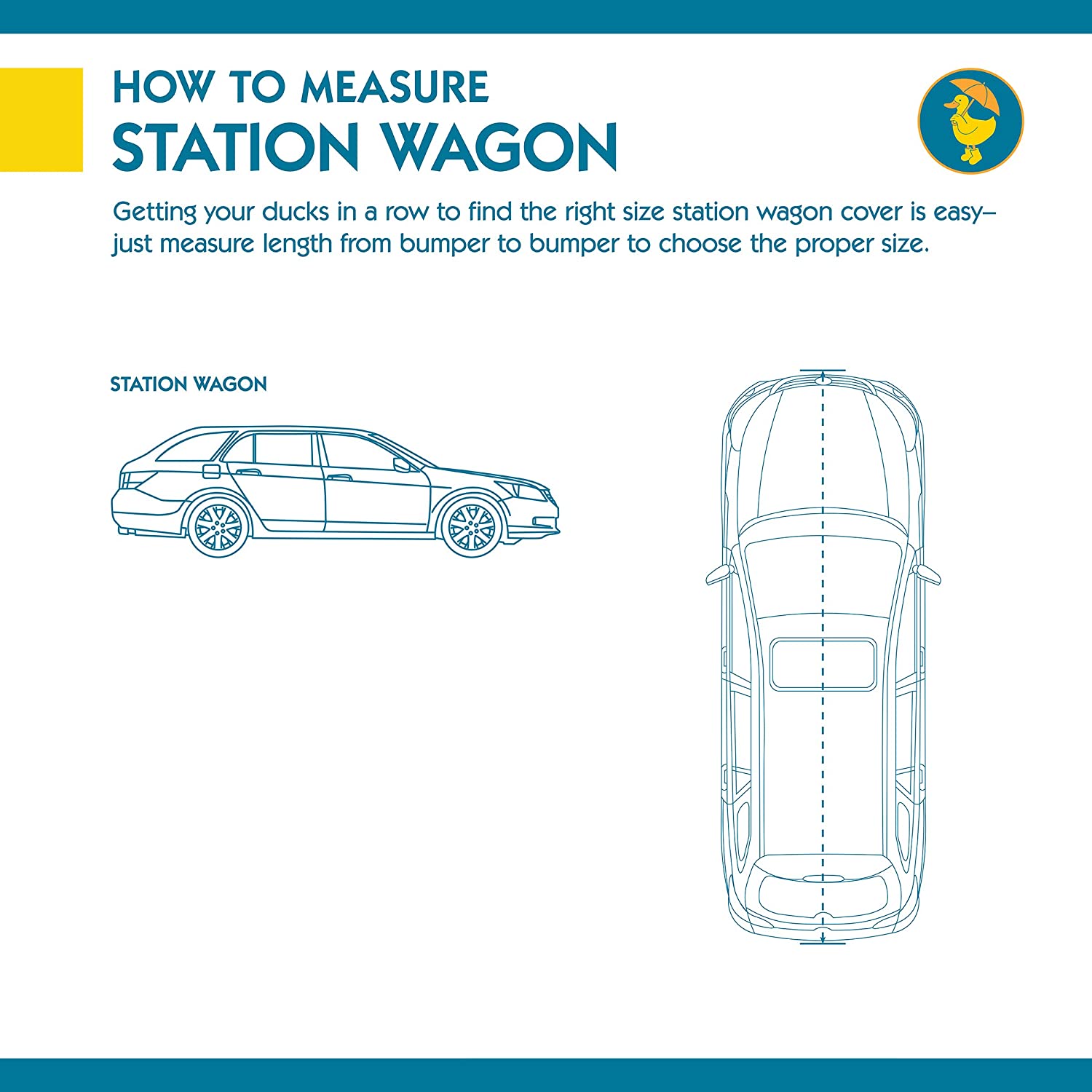 • ALL-WEATHER PROTECTION FOR YOUR CAR: Duck Weather Defender car cover is perfect for all-weather protection and storage for your car. Duck Covers Weather Defender semi-custom covers are made of a triple-layer water-resistant material that does not trap condensation, but allows condensation to escape through evaporation. The soft fabric of the car cover won't scratch the surface of your Station Wagon. Cover for Station Wagons also comes with a storage bag for easy handling