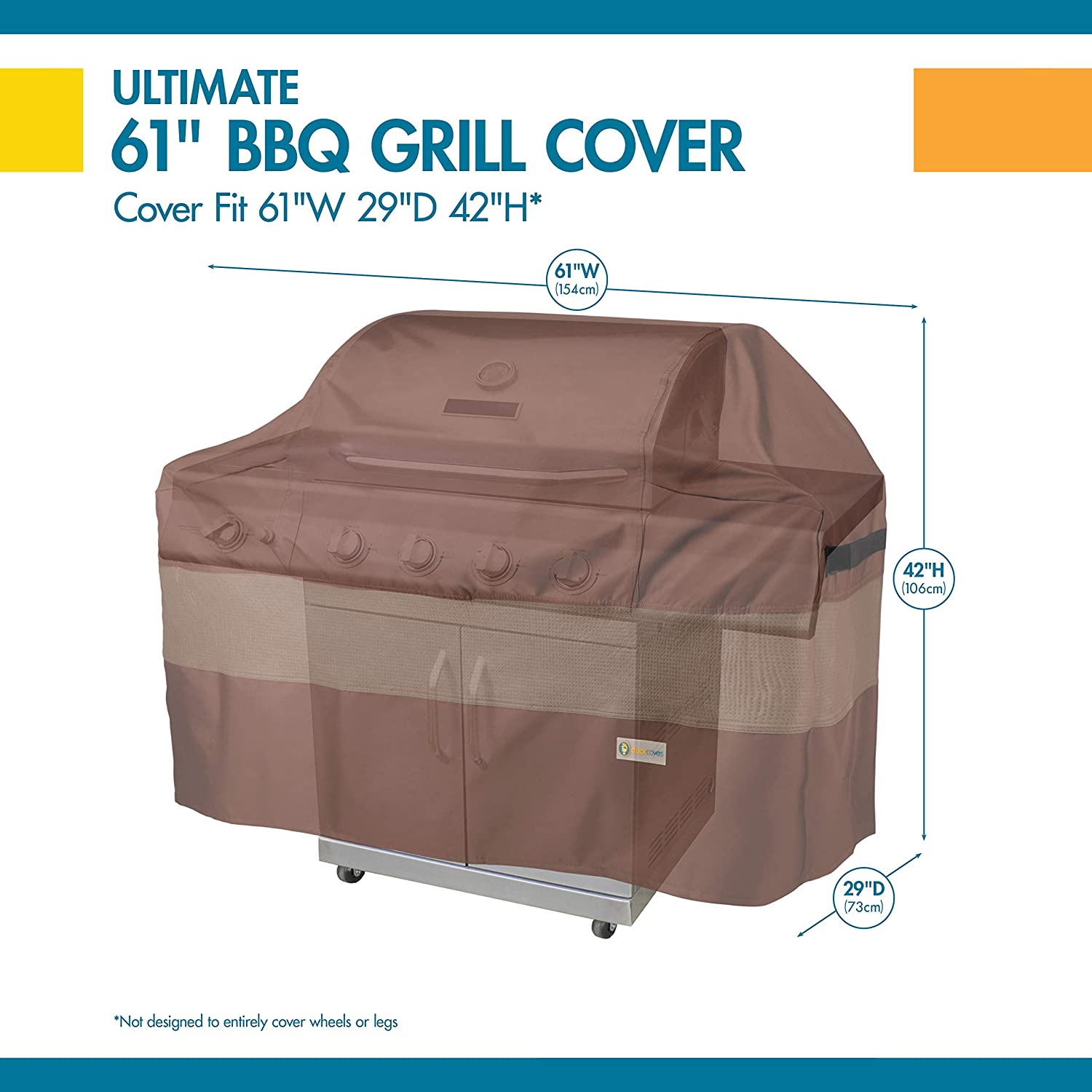Ideal for use in harsh weather and high wind conditions. Duck Covers Ultimate Series grill covers are designed to protect BBQ grills from dust, dirt, sun, rain and heavy snow. Manufactured using a combination of high-strength polyester top panel, plus innovative, multi-layer, breathable side panels to help eliminate condensation. The multi-layer, breathable side panels eliminates the need for vents and provides additional cover height. High-strength polyester base for added durability. Mocha Cappuccino color. Two-year limited warranty has you covered. Migrate to Duck Covers today!