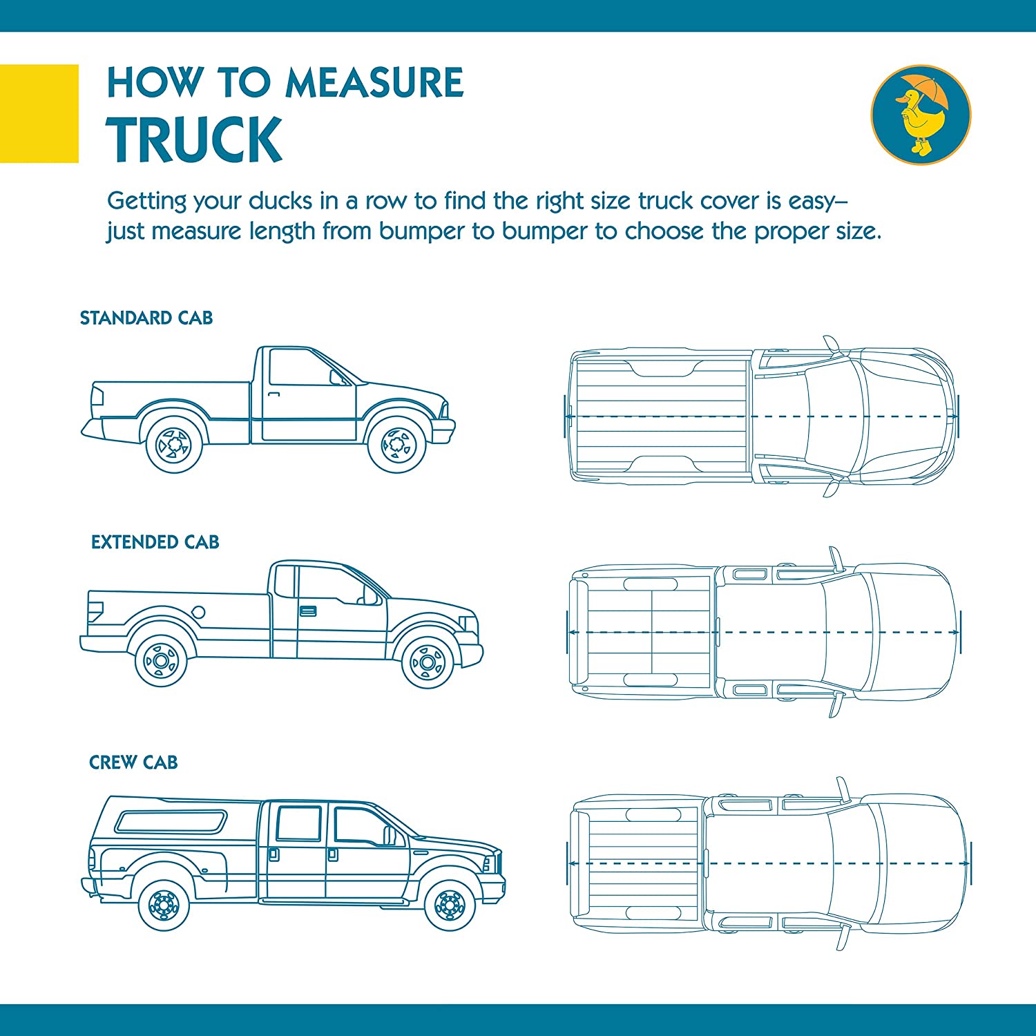 • TRUCK COVER TO PROTECT AGAINST ALL ELEMENTS: Duck Covers Weather Defender semi-custom covers feature ultrasonically welded seams to improve water resistance while protecting against dust, dirt, pollution, bird droppings, tree sap and UV fading