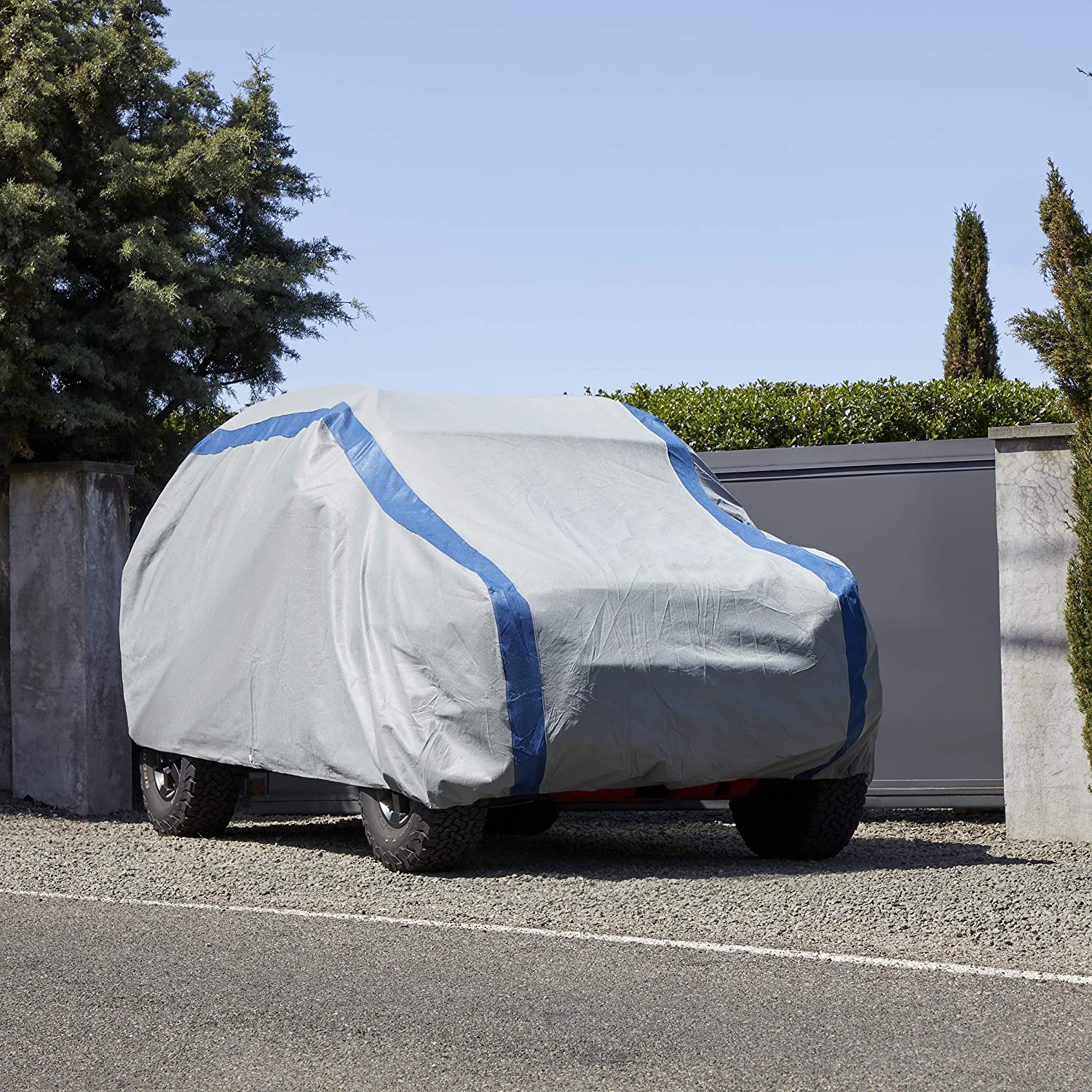 • STYLISH TRUCK COVER: Duck Weather Defender truck covers are grey with navy blue silhouette stripes, giving your car protection in style