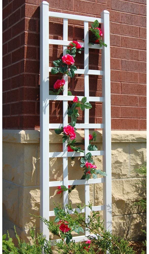 Made in USA. This simple, easy to assemble trellis can be used against a wall or freestanding using the two included 16 inch ground anchors. Measuring 74-Inch high and 22-Inch wide the Elmwood Trellis is strong enough for any vine or climbing plant. Made with the highest quality PVC vinyl, this trellis is completely maintenance free. The high quality PVC vinyl contains the highest concentration of titanium dioxide for the strongest UV sunlight protection. Buy with confidence, all Dura-Trel products are backed with a 20 year warranty guaranteeing your trellis will never delaminate, crack, peel, fade or discolor in any way. Once assembled and installed in your yard, the only maintenance ever needed is a simple spray with a garden hose and wipe clean.