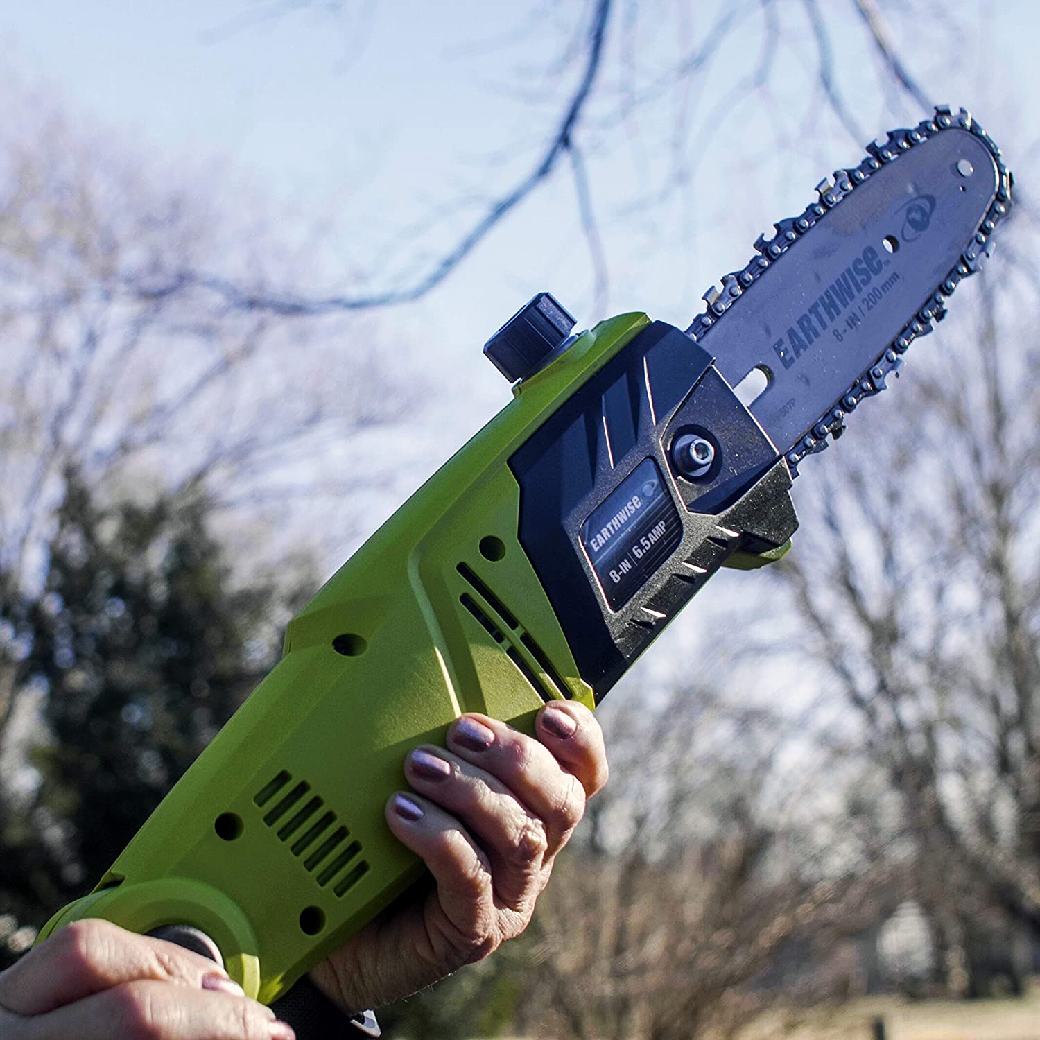 - Powerful 6. 5-Amp motor offers the power to tackle trimming branches and limbs around your house with this corded electric pole saw; fully extended pole allows for 9-foot reach when trimming trees and hard to reach brush